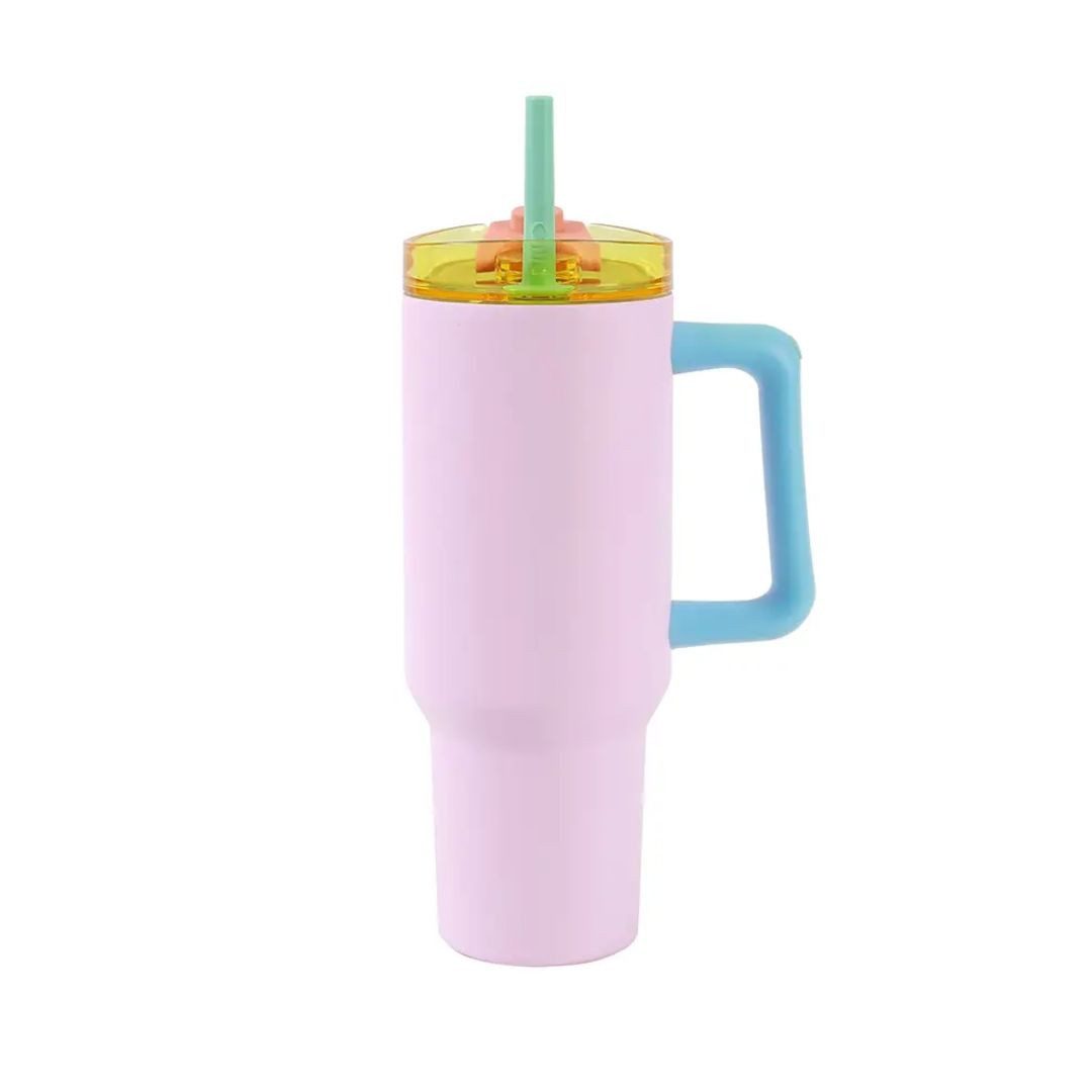 Stylisches Color-Design in Rosa oder Lila mit passendem Griff, Deckel und Strohhalm