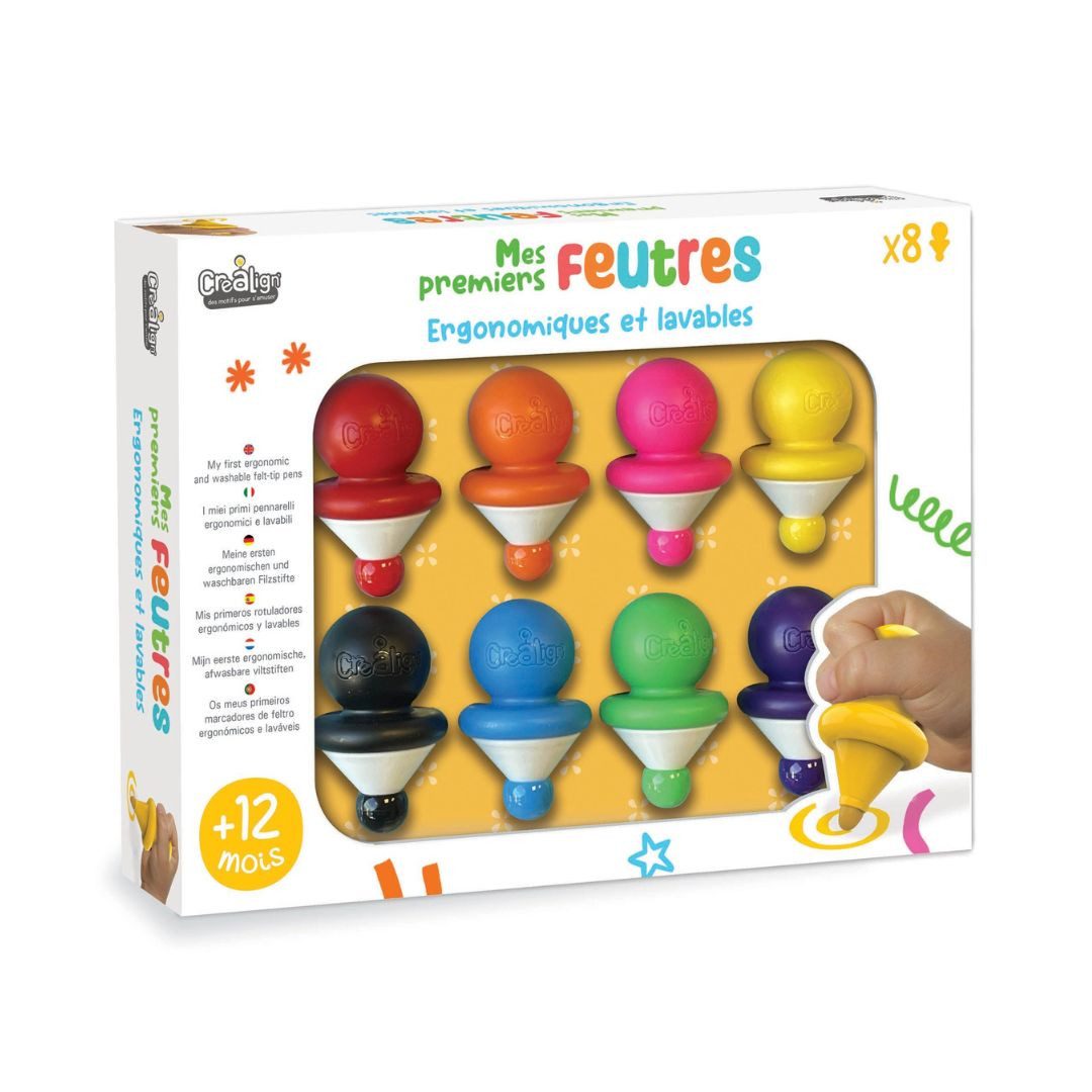 Meine ersten Filzstifte – Perfekt für kleine Künstler Die ersten kreativen Versuche deines Kindes sind ein besonderer Meilenstein! Mit unseren speziell für Kleinkinder entwickelten Filzstiften wird das Malen und Zeichnen zu einem sicheren und farbenfrohen Erlebnis. Diese Filzstifte wurden für kleine Hände konzipiert und ermöglichen einen spielerischen Einstieg in die Welt der Farben. Warum sind diese Filzstifte ideal für Kleinkinder? Unsere Filzstifte wurden entwickelt, um Kleinkindern eine sichere und einfache Möglichkeit zu bieten, ihre kreative Seite zu entfalten. Die ergonomische Form sorgt dafür, dass selbst die Kleinsten sie mühelos greifen können. Ergonomische Form – Entwickelt für kleine Hände, fördert eine natürliche Handhabung und den richtigen Griff. Robuste Spitzen – Widerstehen selbst kräftigem Druck und behalten ihre Form für langanhaltenden Malspaß. Leuchtende Farben – Intensive, kindgerechte Farben wecken die Neugier und laden zum kreativen Experimentieren ein. Sichere Kappen – Erwachsene können die Stifte leicht öffnen, während Kinder sie nicht unbeaufsichtigt nutzen können. Farberkennung auf der Kappe – Fördert das Farbverständnis und hilft beim spielerischen Lernen. Maximale Sicherheit für dein Kind Sicherheit ist das A und O bei Produkten für Kleinkinder. Unsere Filzstifte erfüllen höchste Standards und sind speziell für die Nutzung durch kleine Kinder entwickelt: Tinte auf Wasserbasis – Leicht abwaschbar von Haut, Kleidung und Möbeln – ideal für erste Malversuche. Geprüft und zertifiziert – Die verwendete Tinte ist unbedenklich und entspricht allen Sicherheitsstandards für Kleinkinder. Belüftete Kappen – Reduzieren die Erstickungsgefahr und sorgen für zusätzlichen Schutz. Frei von schädlichen Stoffen – Du kannst sicher sein, dass dein Kind unbesorgt malen kann. Abwaschbare Filzstifte – Perfekt für unbeschwertes Malen Beim kreativen Gestalten kann es schon mal bunt zugehen! Deshalb haben wir darauf geachtet, dass unsere Filzstifte keine bleibenden Spuren hinterlassen. Die Tinte lässt sich leicht mit Wasser und Seife von der Haut entfernen. Auch auf Kleidung und Möbeln genügt meist ein feuchtes Tuch, um Farbreste abzuwischen. Farbenfroher Lernspaß für die Jüngsten Farben spielen eine wichtige Rolle in der frühkindlichen Entwicklung. Mit unseren Filzstiften kann dein Kind nicht nur malen, sondern auch Farben entdecken und zuordnen. Die leuchtenden Farbtöne unterstützen die visuelle Wahrnehmung und regen die Fantasie an. Ein ideales Hilfsmittel für die kreative Entfaltung. Warum sind unsere Filzstifte die beste Wahl? Für Kleinkinder ab 12 Monaten geeignet – Entwickelt für kleine Hände und sicheres Malen. Sicher & ungiftig – Zertifizierte und geprüfte Inhaltsstoffe ohne bedenkliche Stoffe. Langlebig & stabil – Widerstandsfähige Spitzen für ausdauernden Malspaß. Leicht abwaschbar – Keine bleibenden Flecken auf Haut, Kleidung oder Möbeln. Fördert die Kreativität – Spielerisches Lernen und kreative Entfaltung. Fazit – Der perfekte Einstieg in die Welt der Farben Unsere Filzstifte sind mehr als nur ein Spielzeug – sie sind ein wertvolles Hilfsmittel, um Kreativität, Motorik und Farbverständnis zu fördern. Dank ergonomischer Form, geprüfter Sicherheit und intensiver Farben bieten sie die perfekte Grundlage für erste Kunstwerke. Gönne deinem Kind einen sicheren und spaßigen Einstieg in die kreative Welt des Malens mit den besten Filzstiften für Kleinkinder! Bringe Farbe in den Alltag deines Kindes – jetzt bestellen und grenzenlosen Malspaß erleben!