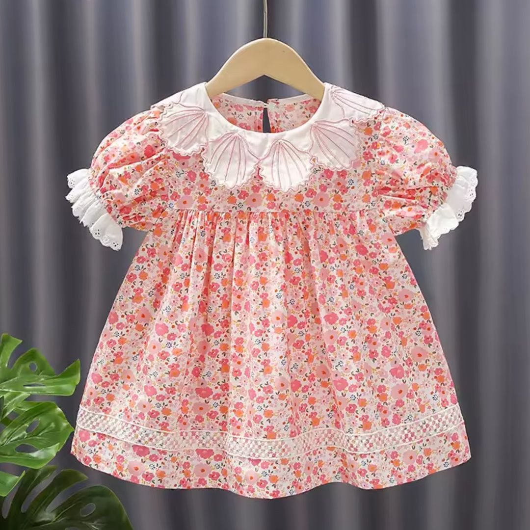Bezauberndes Sommerkleid mit verspieltem Blumenmuster und großem Kragen für kleine Mädchen! Dieses entzückende Sommerkleid wird kleine Mädchen verzaubern! Es besticht durch sein verspieltes Blumenmuster und ein wunderschönes Detail: einen großen Kragen, der dem Kleid einen besonderen Charme verleiht. Produktinformationen zum Kleid mit Blumenmuster beige: Kleid in Midi-Длина mit A-Linie für eine schöne Passform. Kurzarm mit Puffärmeln und zarten Rüschen, die dem Kleid eine verspielte Note verleihen. Rundhalsausschnitt mit einem herrlichen, großen Kragen, der mit Stickereien verziert ist, für einen bezaubernden Look. Florales Allover-Muster für einen frischen und sommerlichen Look. Mit süßer Spitzenverzierung am unteren Saum für zusätzlichen Charme. Hergestellt aus 100% Baumwolle für Weichheit und Komfort. Leicht und angenehm zu tragen, perfekt für warme Sommertage. Dieses bezaubernde Sommerkleid ist nicht nur hübsch anzusehen, sondern auch angenehm zu tragen. Es ist die perfekte Wahl für kleine Mädchen, die ihren Sommer in vollen Zügen genießen möchten! in verschiedenen Farbvarianten erhältlich.