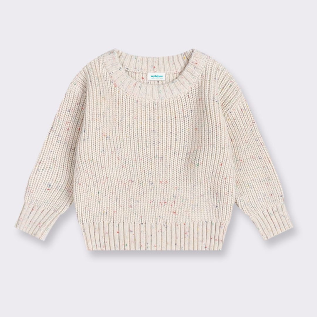 Design: Grobstrick, Loose Fit, wahlweise Unifarben oder Beige mit bunten Dots.