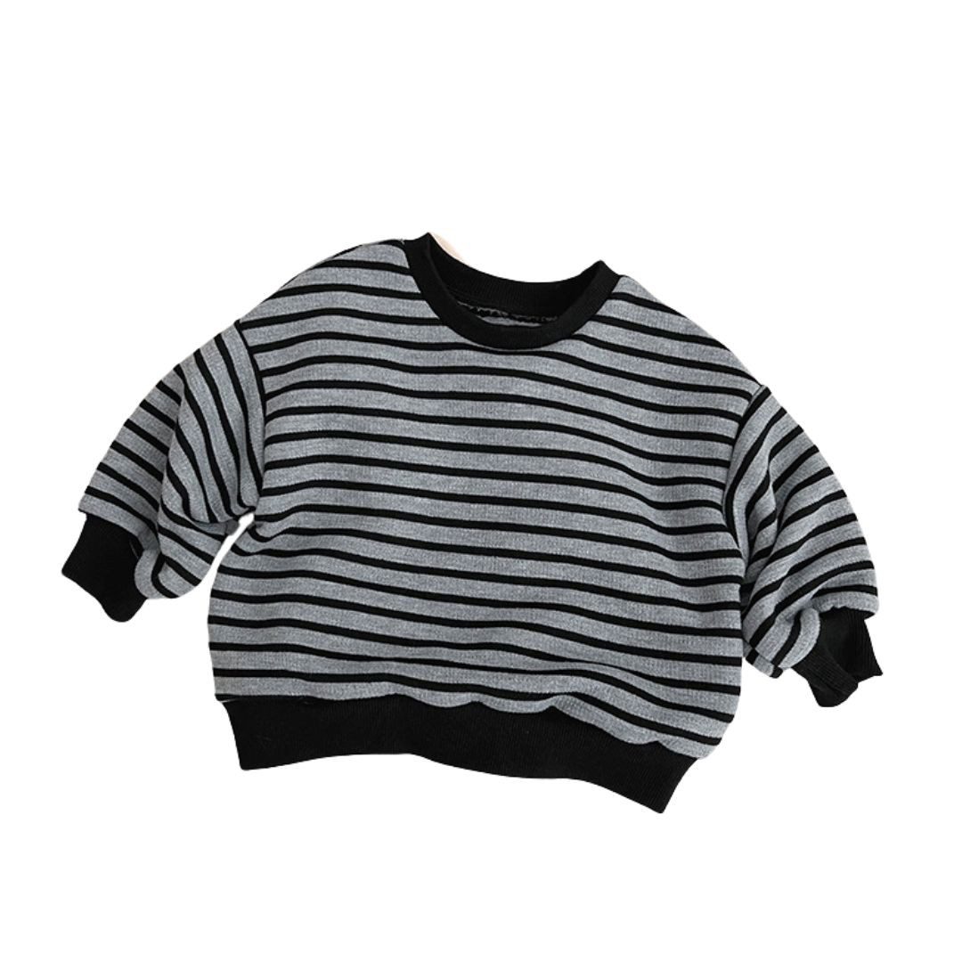 Modernes Design: Anthrazitfarbenes Sweatshirt mit grauen und schwarzen Streifen.