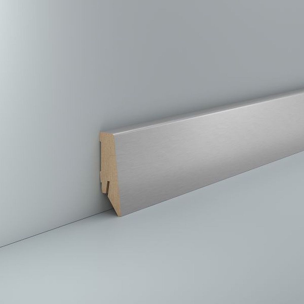 Diese Sockelleiste in Dekor Aluminium ist die perfekte Wahl für moderne Bodenbeläge – egal ob Laminat, Vinyl, Klick-Vinyl oder Parkett. Sie harmoniert hervorragend mit neutralen, grauen oder dunklen Farbtönen und sorgt für ein stimmiges Gesamtbild vom Boden zur Wand.
