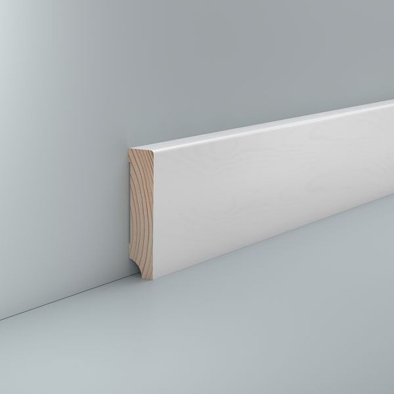 Das Material der weißen Sockelleiste "Keferloh" besteht aus hochwertigen astfreien Kiefernholz. Unsere Sockelleisten aus Massivholz haben einen individuellen Charakter und einzigartige Maserungen.