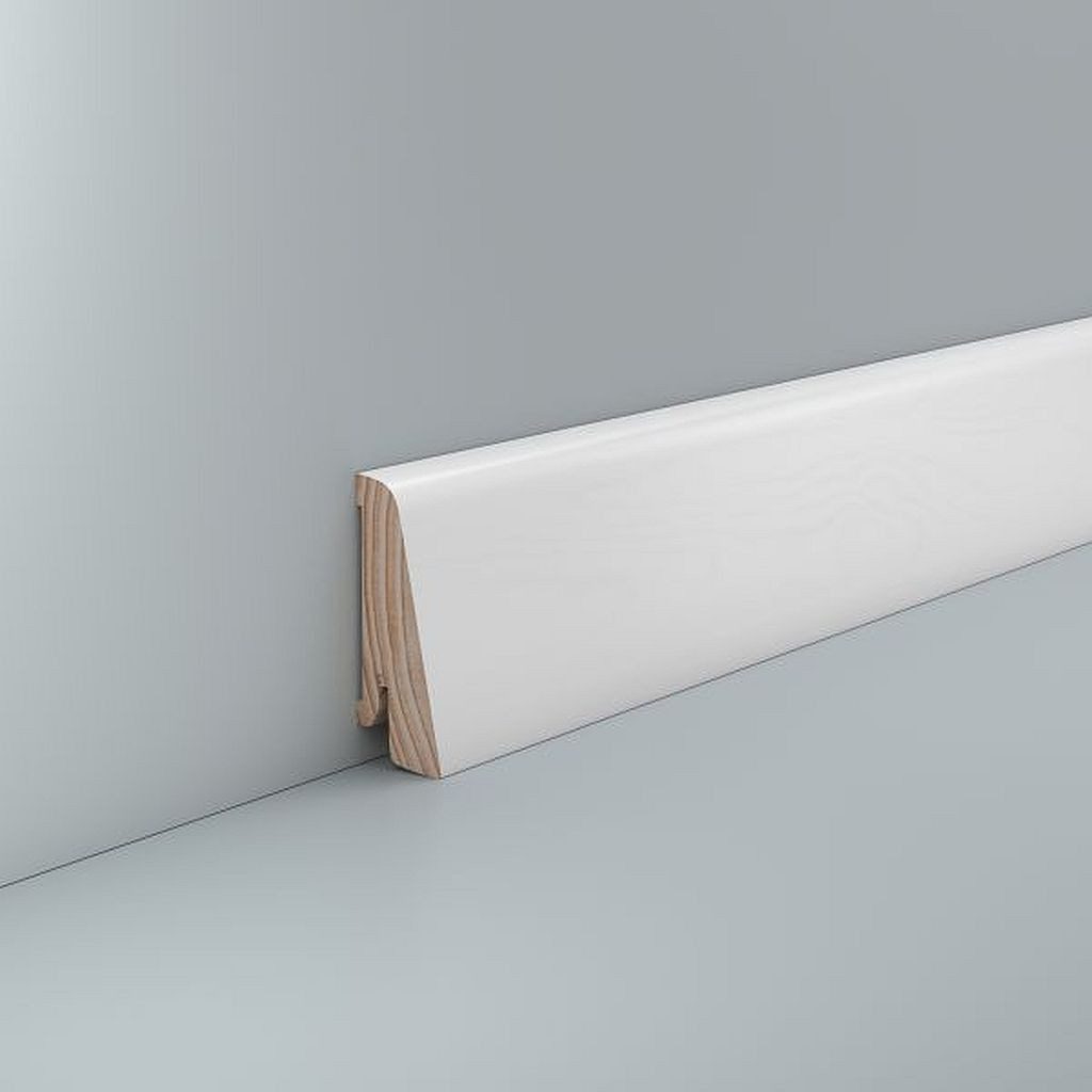 Verleihen Sie Ihren Wohnräumen mit der Sockelleiste Hain 20x58 mm den perfekten Abschluss: Unsere Sockelleisten aus massivem Holz mit hochwertiger weißer Starkfolie kombinieren natürliche Stabilität mit moderner Oberflächenveredelung. Die Sichtseiten dieser Leisten sind mit einer strapazierfähigen, glatten Starkfolie in einem eleganten Weißton beschichtet – ähnlich RAL 9003 / RAL 9016. Mit einer Длина von 2,50 Metern eignen sich die Leisten ideal für großflächige und effiziente Wandabschlüsse. Die Sockelleiste Hain verfügt über einen kleinen Kabelkanal-und Clipfräsung.