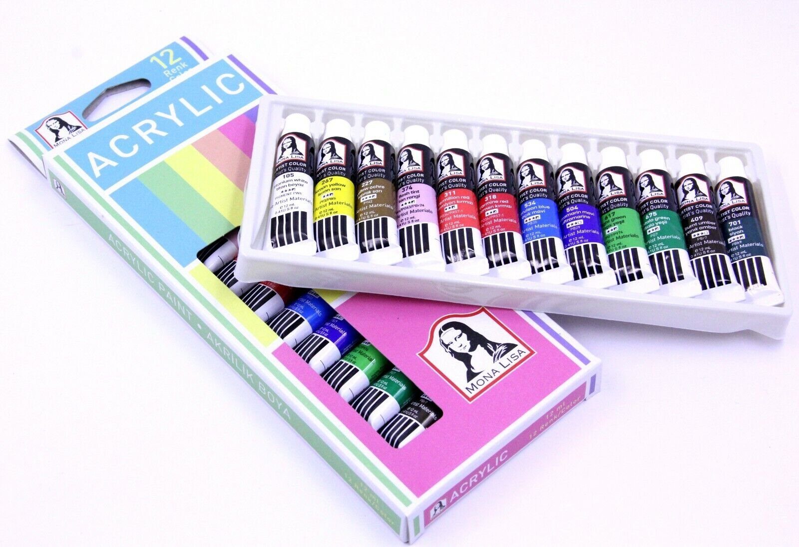 Monalisa Acrylfarben Set 12x12ml Acryl Farben für Kinder Perfekt für Leinwand, Papier, Holz, Metal, Stein usw. ungiftig, Ideal für Anfänger und Profis…