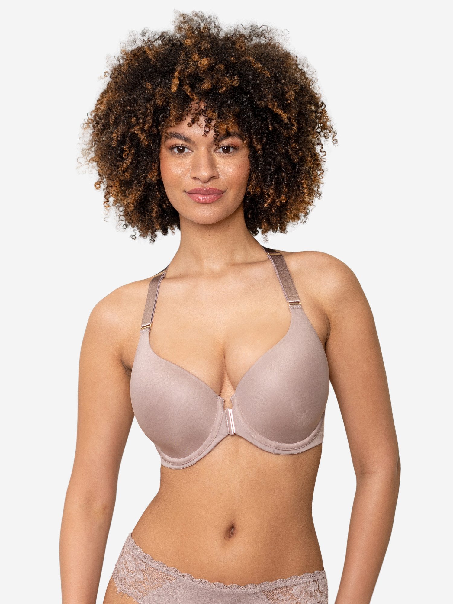Vorderverschluss-BH Pure Luxe Purer Luxus: Wunderschöner Rücken & Vorderverschluss Beim BH "Pure Luxe" musst Du keinen Kompromiss eingehen: Der wunderschöne Rücken mit Spitze und Straps ist ein absoluter Hingucker. Der BH lässt sich mit einem sicheren "Click & Slide"-Verschluss vorne zwischen Deinen Brüsten verschließen. So kannst Du ihn einfach An- und Ausziehen und auch noch mit Deinem schönen Rücken entzücken. Der Vorderverschluss am BH ist auch für Personen mit körperlichen Einschränkungen besonders praktisch. Vorne besteht der BH aus einem glatten Cup und lässt sich daher perfekt unter T-Shirts tragen. Die goldenen Details sind besondere Highlights.