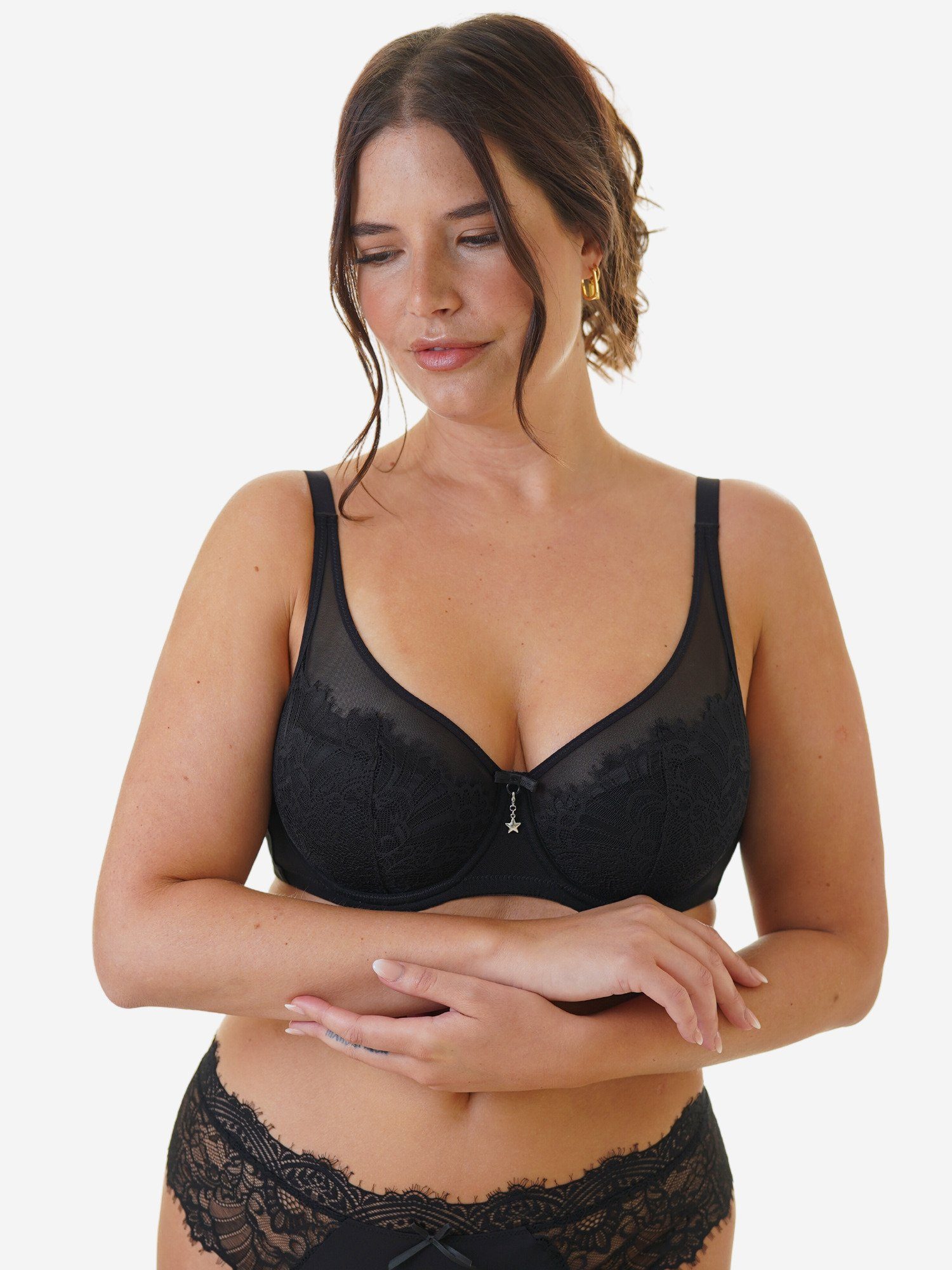 Die Cups sind nur leicht wattiert, wodurch ein angenehmes Tragegefühl garantiert wird. Die Mesh-Details am oberen Cup hin zu den Trägern sind besonders atmungsaktiv, damit Du Dich auch in stressigen Zeiten luftig fühlst. Der transparente Stoff bietet Dir, durch das Durchscheinen der Haut, einen subtilen Charme.