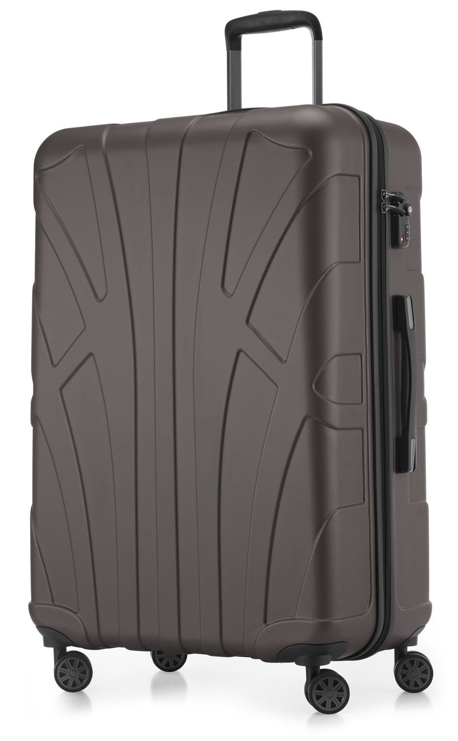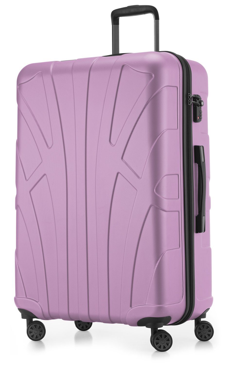 Die matte ABS-Hartschale des Reisetrollleys ist robust, absolut stabil, stoßunempfindlich und bruchsicher. Die fein strukturierte Oberfläche sorgt dafür, dass kleine Kratzer auf dem Hartschalentrolley unsichtbar bleiben. Das Reliefdesign ist schlicht und schimmert edel.