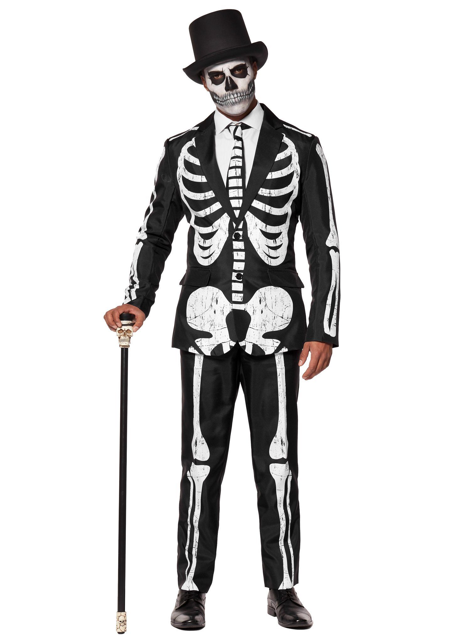 Ausstattung | - SuitMeister Mister Skeleton Partyanzug dreiteilig- mit Jackett- mit Hose- mit schwarzer Krawatte (ohne Druck)- ohne sonstige Kostümteile und Accessoires |