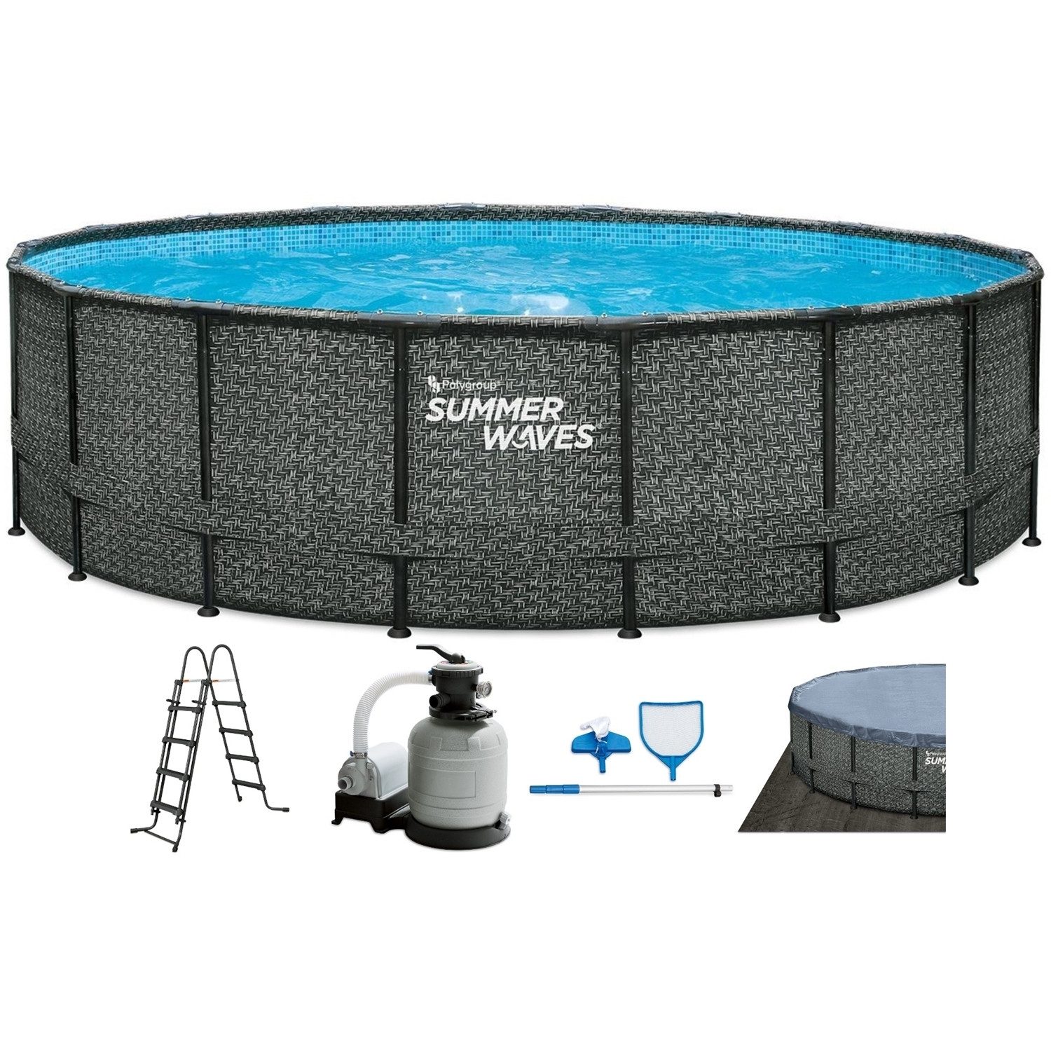 Der perfekte Pool für den Garten. Das Äußere des Elite Frame Pool hat ein schwarzes Fischgrätenmuster, die Rahmen sind ebenfalls schwarz. Der Pool ist einfach und schnell aufzustellen und hat eine solide Konstruktion. Neben dem tollen Becken, in dem jeder Platz für Abkühlung und Wasserspaß hat, ist einiges Zubehör inkusive.