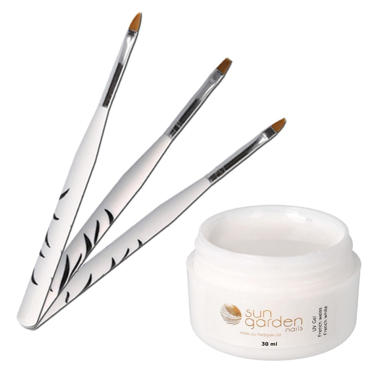 Zusammengefasst, das Sun Garden Nails UV Gel Classic French Gel Weiß (30 ml) und das 3-tlg. Pinselset bietet Zeitlose Eleganz und beinhaltet ein 3-tlg. Pinselset