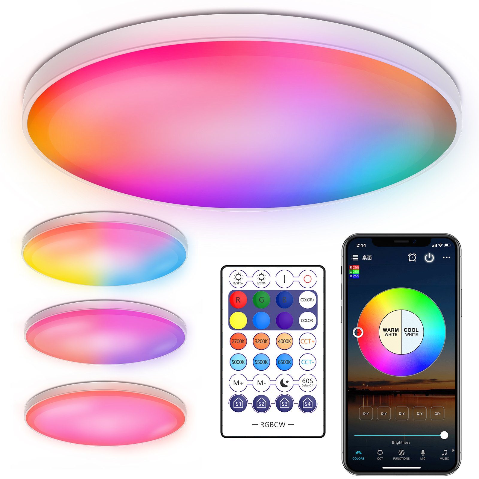 Die intelligente Deckenleuchte mit WiFi- und Bluetooth-Funktion kann mit Amazon Alexa, Google Assistance und IFTTT arbeiten, so dass Sie die LED-Deckenleuchte per Sprache steuern können, um die Farbe zu ändern, die Helligkeit zu dimmen und den Timer einzustellen. Es gibt 16 Millionen Farben (RGB+CCT) für Sie zu wählen. Diese Deckenleuchte ist für Wohnzimmer oder Schlafzimmer. Es ist ein Mikrofon eingebaut, so dass die Lichtfarbe mit der Musik synchronisiert werden kann. 2.4G-Controller und Magic Home APP ermöglichen auch eine Fernsteuerung.