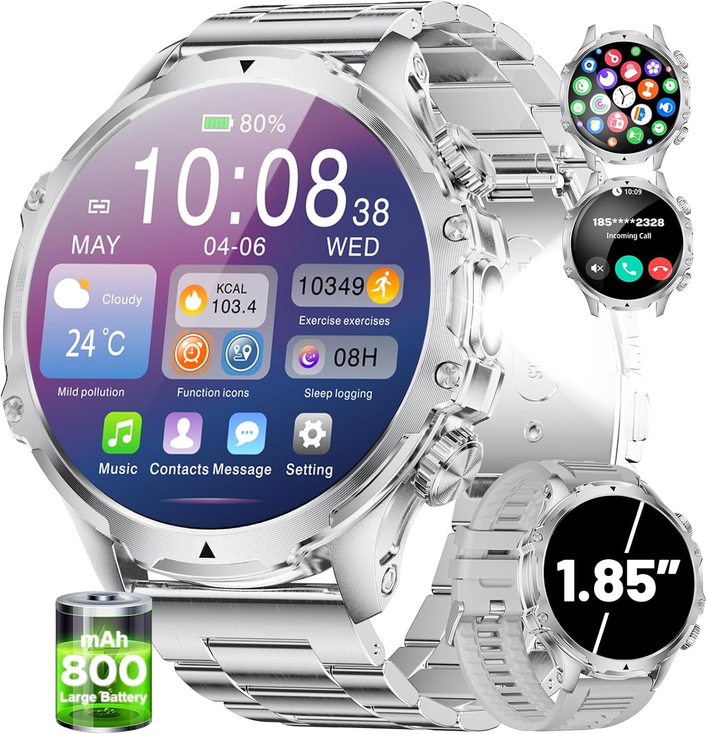 Die Smartwatch für Herren überzeugt mit 1.85 Zoll Bildschirm und 360×360 Pixel Auflösung. Das runde Gehäuse aus Metall verleiht ihr einen eleganten Look und robuste Stabilität.