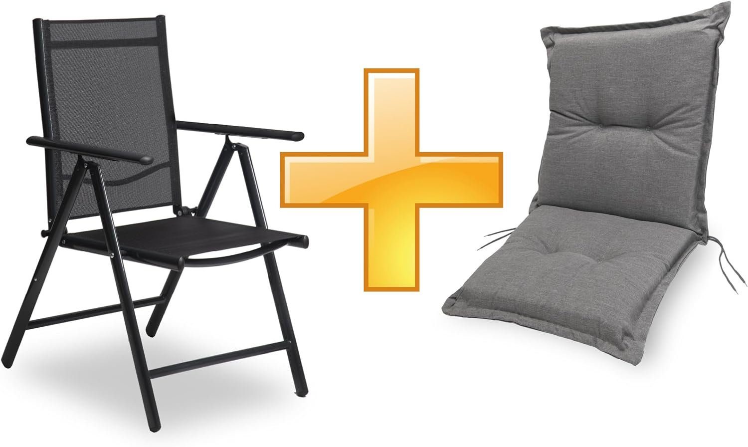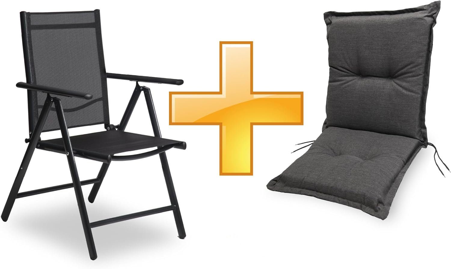 MODERNE UND BEQUEME KLAPPSTÜHLE NIEDRIGLEHNER MIT PASSENDEN KISSEN VON SUNNYPILLOW Ideal für den Innen - und Außenbereich! Применить montiert geliefert! Leicht und stabil! Gewicht: ca. 4kg, Belastbarkeit: 120kg. Das vollständige Set sorgt für höchsten Sitzkomfort. GARTENSTUHL MODELL CALIFORNIA Die Stühle sind aus pulverbeschichtetem Aluminium (Farbe: Anthrazit) und aus strapazierfähigem, leicht abwaschbarem und atmungsaktivem Kunststoffgewebe gefertigt. Sie sind wasserabweisend und beständig gegen UV- Strahlung. Darüber hinaus verfügen die Stühle über eine 8 fach verstellbare Rückenlehne. STUHLKISSEN MODELL CALIFORNIA Unsere Kissen sind aus gestepptem, wasserabweisendem, UV beständigem Bezugsstoff und aus formstabilem, elastischem Kaltschaumstoff gefertigt. Sie sind extrem dick - 9cm. OPTIMALE ANPASSUNG Die Sitzkissen sind mit seitlichen Kordelbändern, einem Einstellband an der Rückseite und zusätzlichen Haltebändern ausgestattet, die einfache und stabile Montage ermöglichen. Die Kissen verrutschen somit nicht und passen sich perfekt allen gängigen Gartenstühlen an. PLATZSPAREND VERSTAUBAR Bei Nichtgebrauch lassen sich die Terrassenstühle schnell zusammenklappen und platzsparend verstauen.
