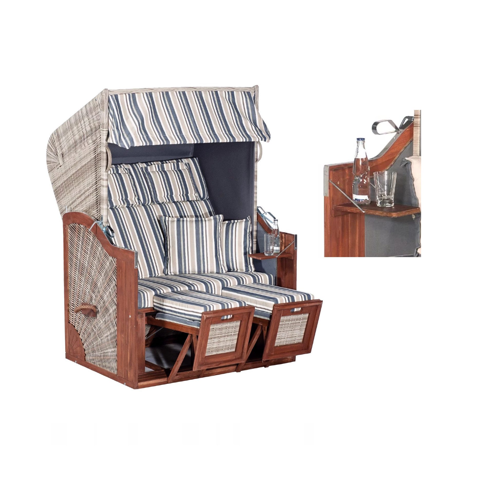 Lieferumfang | 1 Strandkorb 2 Nackenkissen 2 Kuschelkissen 2 Fußkissen 1 Klapptisch |