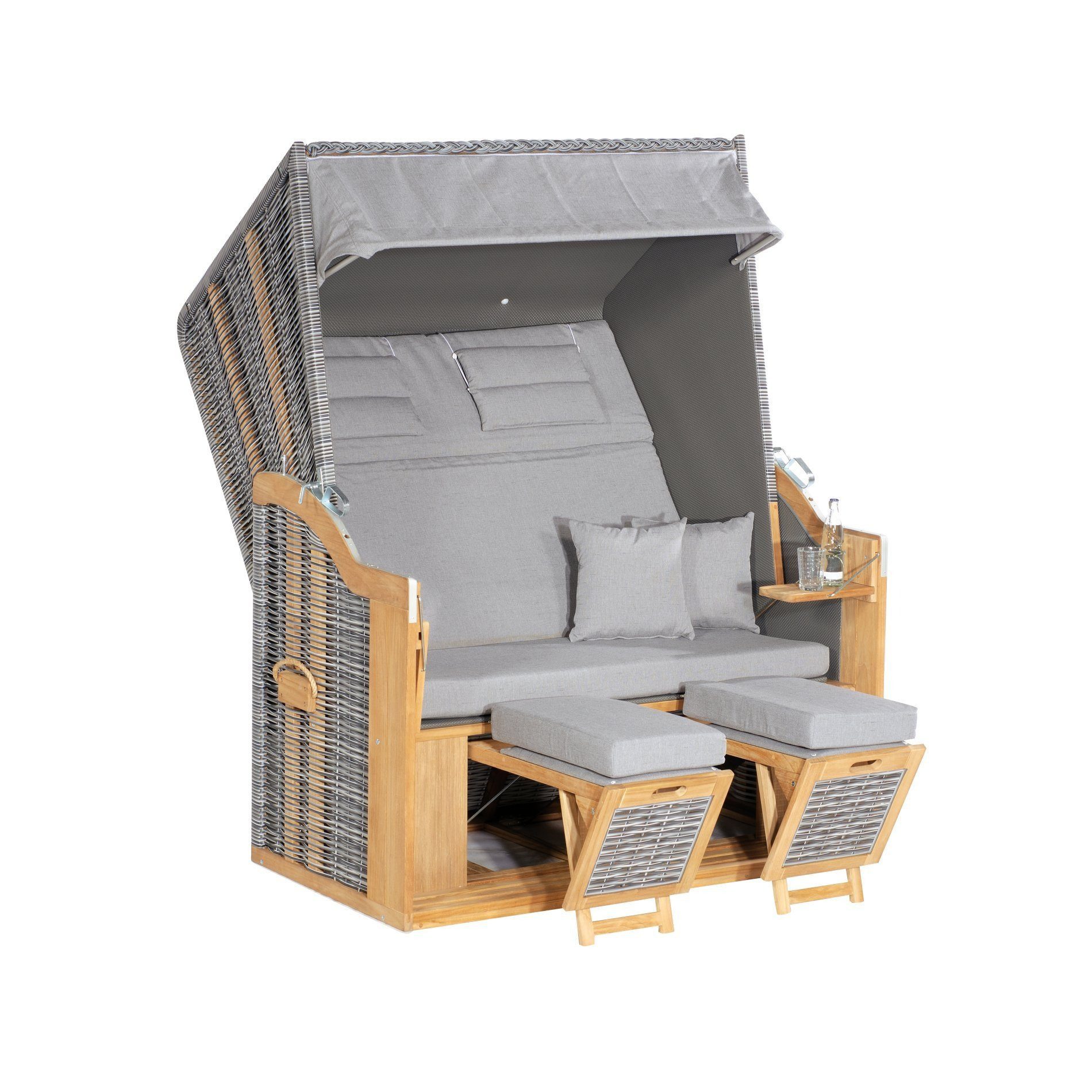 Elegantes Teakholz-Gestell: Der hochwertige Teakholzrahmen verleiht dem Strandkorb nicht nur Stabilität, sondern auch eine natürliche, elegante Optik.