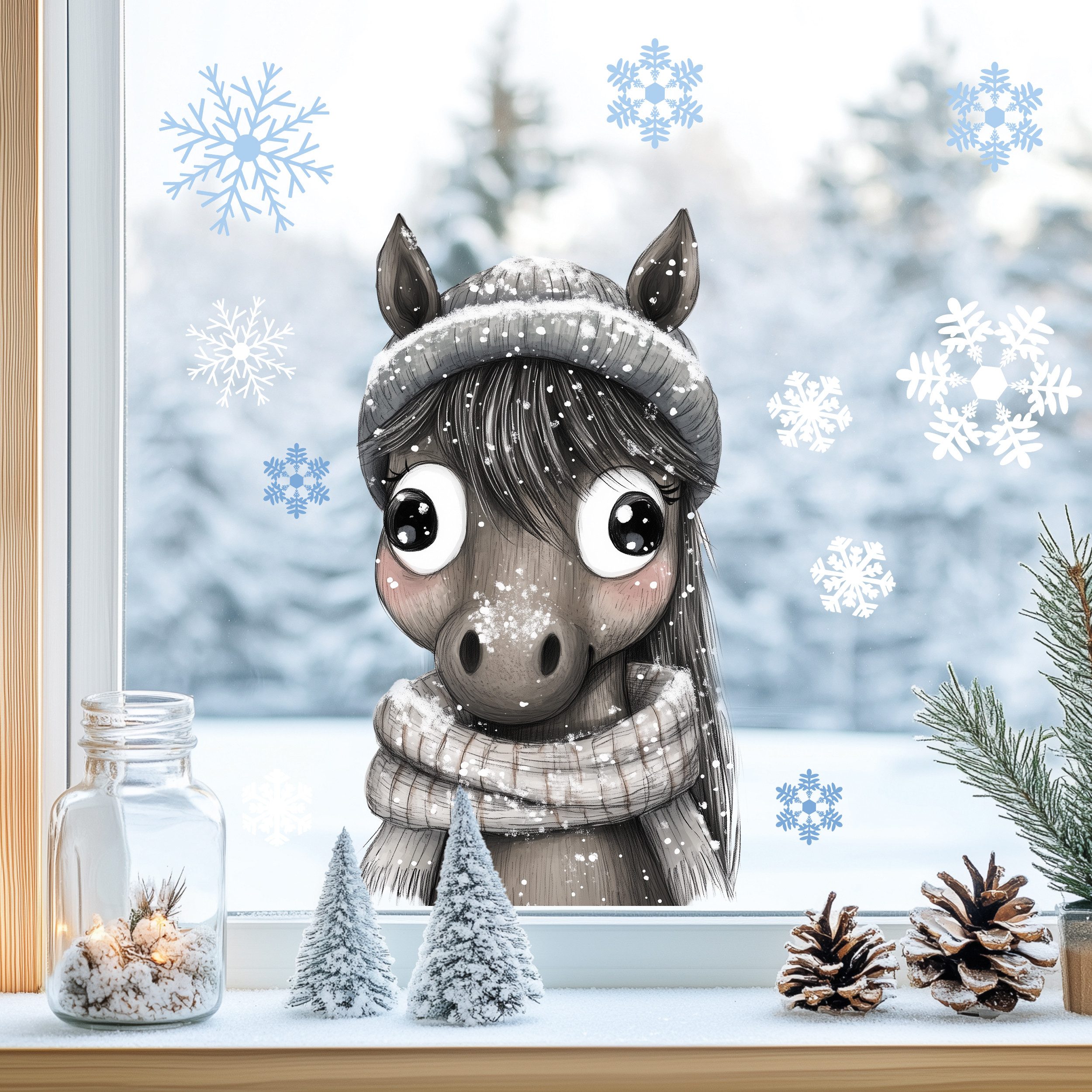 Dieses winterliche Fensterbild bringt die zauberhafte Welt der Schneeflocken und Winterwunder direkt in Ihr Zuhause. Im Mittelpunkt steht ein niedlicher kleiner Esel, der mit seinem süßen, leicht erröteten Gesicht und den großen, neugierigen Augen jedes Herz erobert. Eingehüllt in einen warmen Schal und eine Mütze, verbreitet er eine gemütliche und zugleich verspielte Atmosphäre. Die tanzenden Schneeflocken um ihn herum verleihen dem Bild einen zusätzlichen Hauch von Wintermagie und Frische. Die brillanten Farben und das niedliche Design machen dieses Fensterbild zu einer perfekten Ergänzung für jede winterliche Dekoration. Durch die statisch haftende und wiederverwendbare Beschaffenheit des Aufklebers lässt er sich einfach anbringen und bei Bedarf wieder neu positionieren. Zudem ist dieses Fensterbild umweltfreundlich und wird mit nachhaltigen Tinten hergestellt, die frei von schädlichen Chemikalien sind. Dies macht es zu einer sicheren Wahl für Ihr Zuhause. Lassen Sie die Winterfreude mit diesem niedlichen Esel und seinen Schneeflocken in Ihre Fenster einziehen! Unser Fensterbild ist aus hochwertigem Material gefertigt und lässt sich mühelos auf glatten Oberflächen wie Fenstern oder Spiegeln anbringen. Es haftet ohne Klebstoff und hinterlässt keine Rückstände, was eine einfache Anbringung und Entfernung ermöglicht. Die klaren Farben und die detailreiche Gestaltung machen dieses Bild zu einem Blickfang, der das Auge erfreut. Mit einer Размер von A2, A3 oder A4 passt das Fensterbild perfekt in verschiedene Wohnbereiche wie Wohnzimmer, Schlafzimmer oder Kinderzimmer. Es ist eine großartige Möglichkeit, Ihren persönlichen Stil zu zeigen und Ihre Räume mit einer verspielten Note zu gestalten. Perfekt für eine winterliche Dekoration im Wohnzimmer, Kinderzimmer oder jedem anderen Raum, der einen Hauch von Winterzauber braucht.