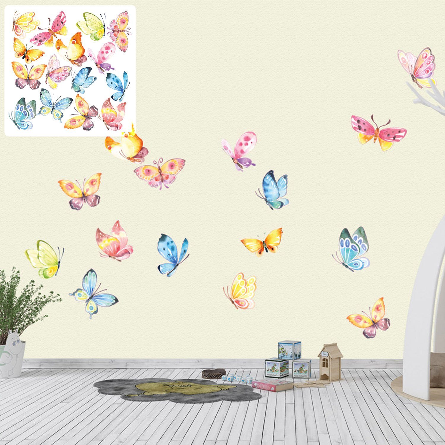 XXL Schmetterling Aufkleberset zur farbenfrohen Dekoration von kompletten Wänden. Maßangaben siehe Produktbild - Skizzentabelle.