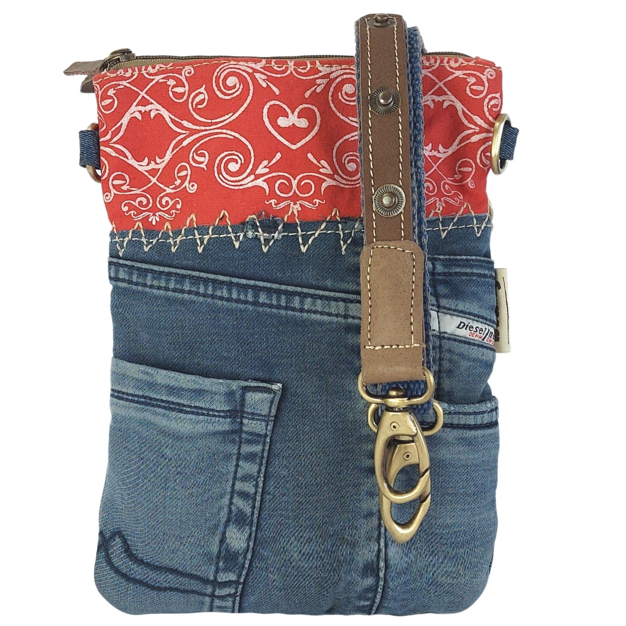 Schultertasche aus robusten, langlebigen und stabilen Canvas, Leder und recycelter Jeans