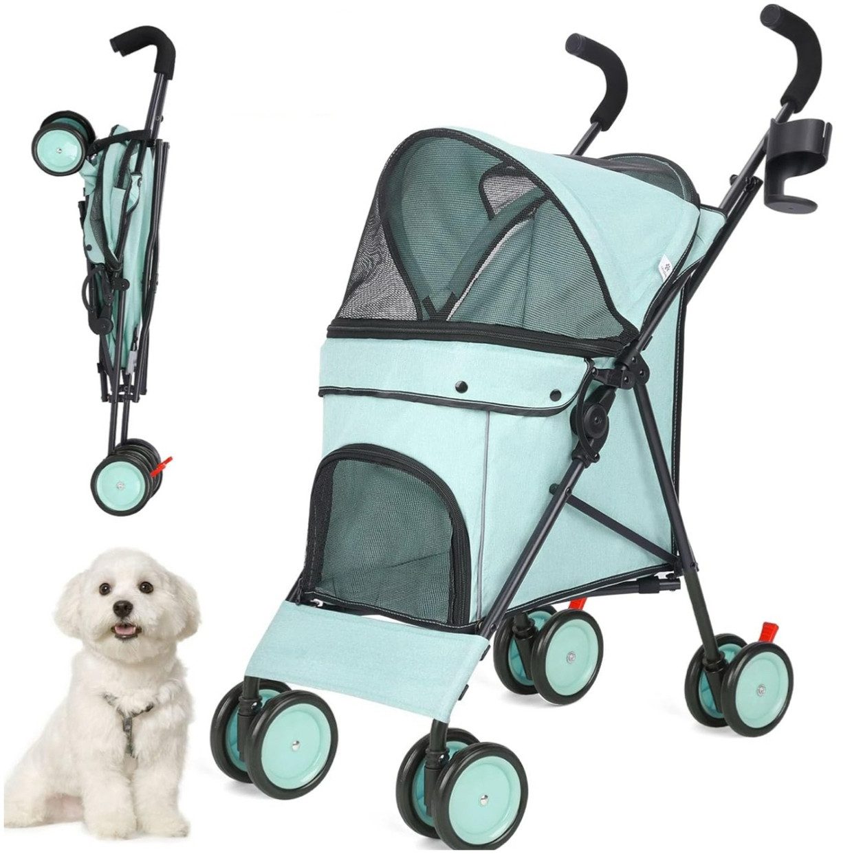 Faltbar und sicher43×29×43 cm, perfekt für kleine Haustiere. Mit Sicherheitsgurt gegen Herausfallen, stabile Vierräder für verschiedene Straßen.