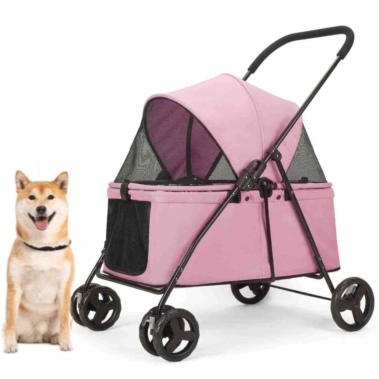 Super Solu P05 Haustierbuggy für Mittelgroßer Hunde bis 36KG. Tragbarer faltbarer Haustierwagen für Hunde und Katzen - Leichtgewicht mit verriegelbaren Rädern, geräumiges Innenfach, seitlicher Müllbeutelhalter - Ideal für Tierarztbesuche, Reisen, Zuhause - Haustiertasche, Mesh-Beleuchtungspaneln, leicht zu reinigen, Hundegänger