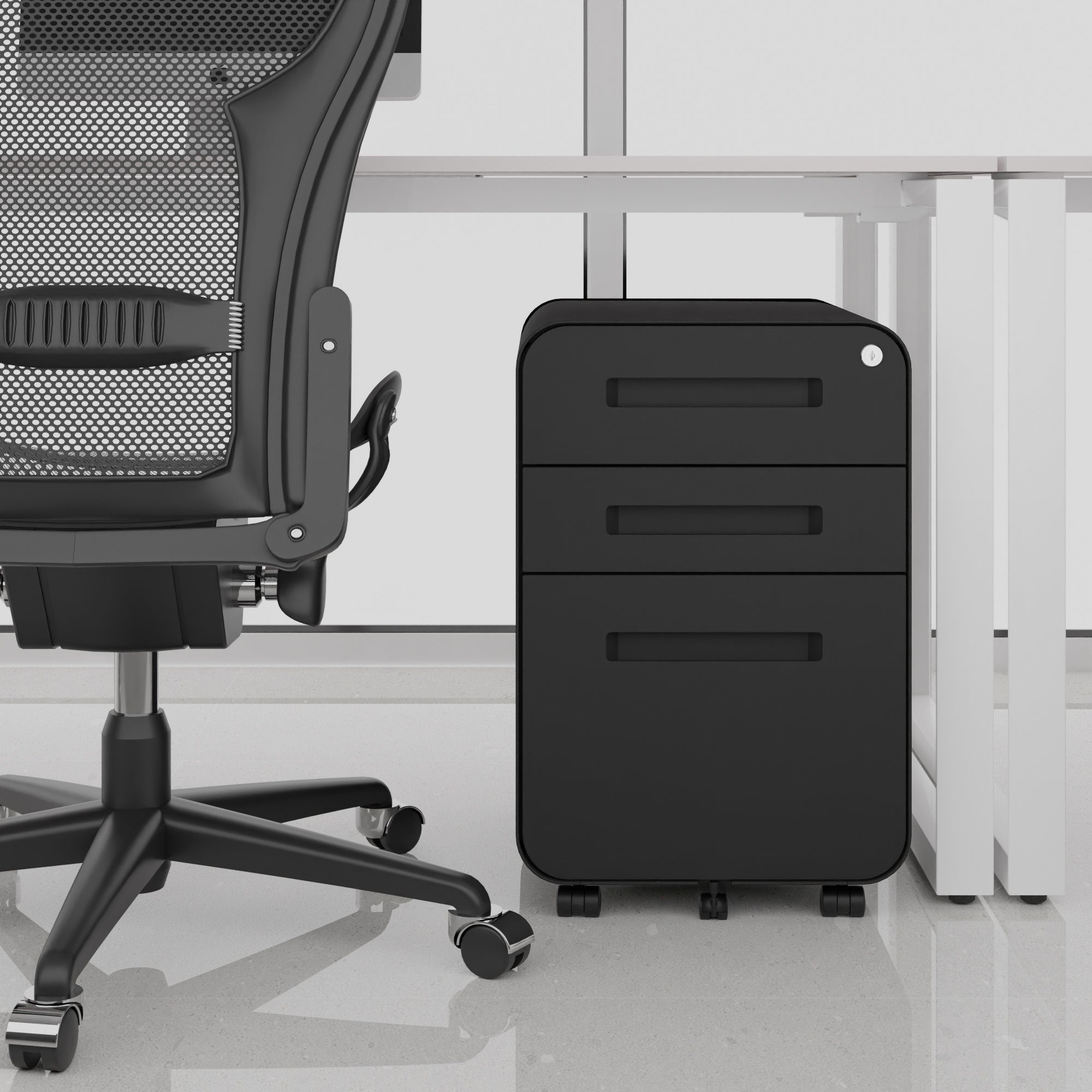 Das Schloss des Schranks kann die drei Schubladen gleichzeitig verriegeln, um Ihre Akten und Vorräte privat und sicher zu halten.