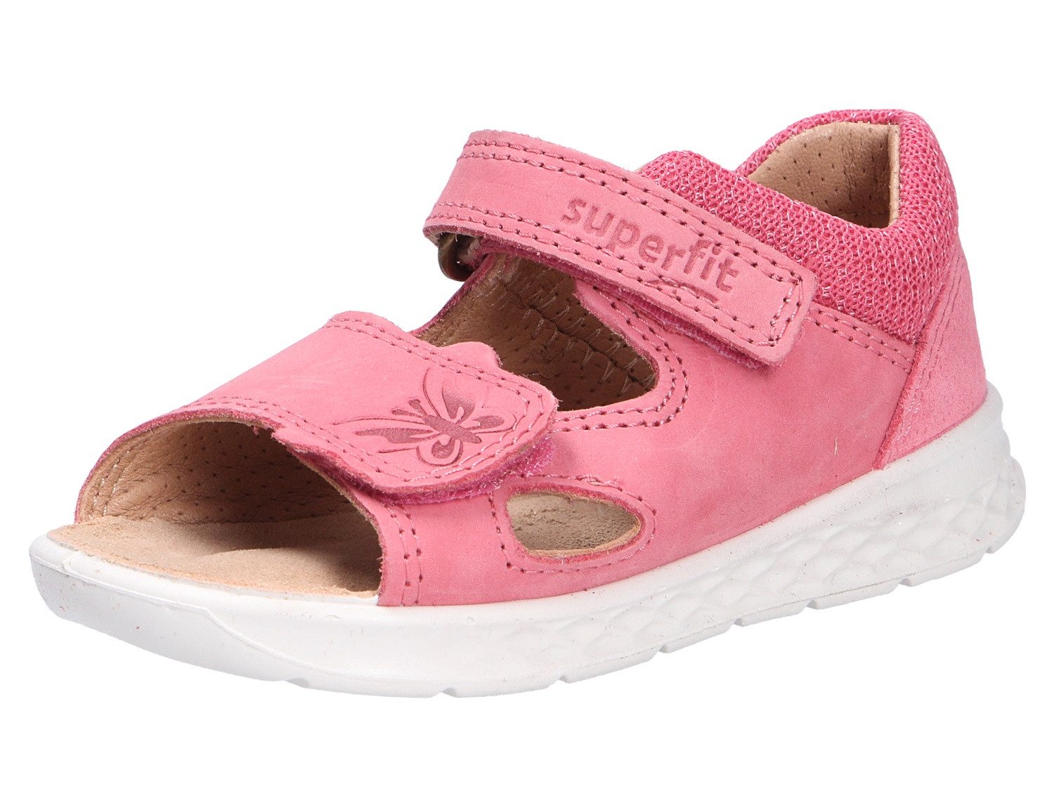 Schöne Lauflernsandale für Mädchen von Superfit aus einem feinen hochwertigem Nubukleder.Die angeraute Oberfläche ist besonders weich und gibt dem Leder ein angenehmes Gefühl. Ebenso glänzt das Modell durch eine weiche Lederausstattung. Das Fußbett(nicht auswechselbar)ist mit Leder bezogen und sorgt für ein angenehmes Fußklima. Die Schuhform wurde nach dem WMS-Weitensystem entwickelt und hat die WMS-Weite M.Dies garaniert optimale Passfom für die "kleinen" Füße. Der Absatz ist durchgehend flach ,die aus einem weichen PU-Material bestehende Laufsohle schont die Gelenke und federt jeden Tritt optimal ab. Klettverschlüsse halten den Schuh sicher am Fuß und sorgen auch für die individuelle und optimale Anpassung. Die Размер обуви fällt regulär aus. 98 Prozent der Kinderärzte und Orthopäden beurteilen die Qualität der SUPERFIT Kinderschuhe mit der Höchstnote. SUPERFIT lässt seine Kinderschuh-Kollektionen regelmäßig bei Kinderärzten und Orthopäden prüfen. Vor 40 Jahren hat SUPERFIT gemeinsam mit Experten die Schuhmodelle entwickelt, und seitdem besteht bei der Entwicklung der Kinderschuhe ständig Kontakt zu Ärzten. Nur diese regelmäßige Überprüfung führt zu dem Ziel in Zukunft die besten Kinderschuhe herzustellen.