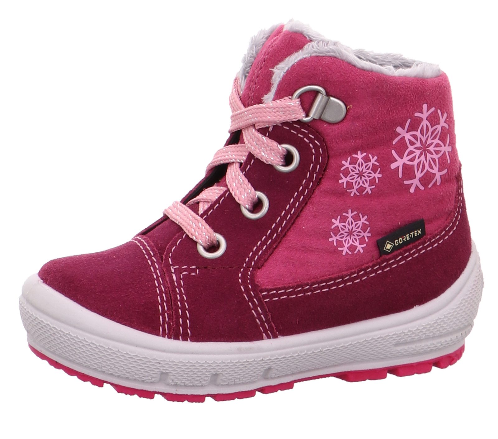 Für die Kleinsten heißt es, auf in den Schnee, mit dem Schnürstiefel von SUPERFIT. Dank Gore-Tex Membrane ist der Winterstiefel für Mädchen zu 100 % wasser- und winddicht und zugleich atmungsaktiv. Das Obermaterial des Schnürboots besteht aus hochwertigem Leder mit süßen lila Verzierungen. Innen wird er von kuschelig warmen Textilfutter gewärmt. Für einen guten Stand und Trittsicherheit sorgt die superleichte, äußerst biegsame und gut profilierte Laufsohle die sich zudem schützend um Fersen- und Zehenbereich zieht. Der angenehm breite Vorderschuh bietet viel Zehenfreiheit und Bequemlichkeit. Die innen verlängerte Fersenkappe sorgt für die notwendige Stabilität und das eingearbeitete Fersenpolster für vermehrten Aufprallschutz. In der Passform Weite M-mittel gearbeitet. Geprüftes WMS-System. Diesen tollen Mädchen Stiefel erhalten Sie in der Размер 20, 21, 22, 23, 24 und 25.