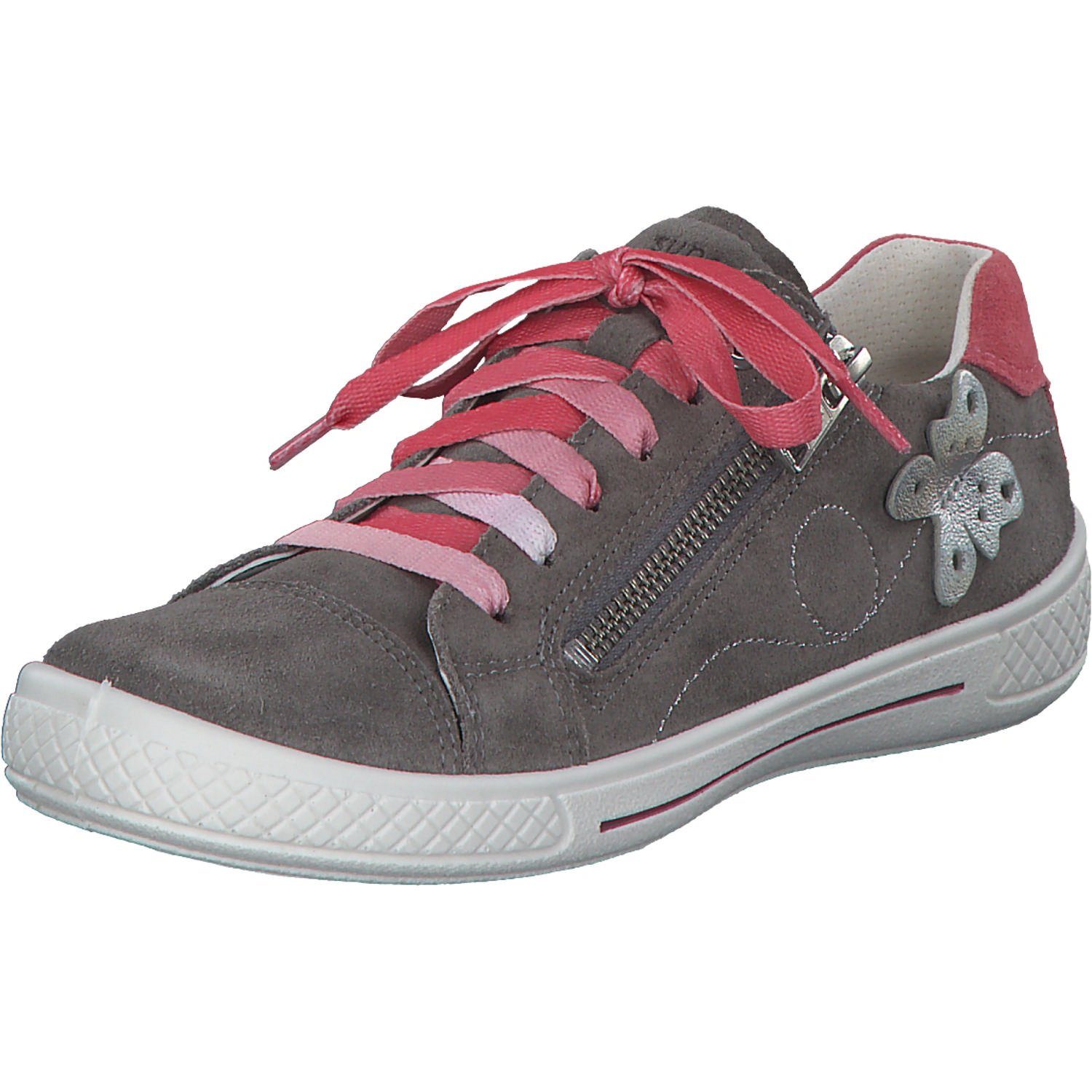 Ein toller Sneaker aus dem Hause superfit, perfekt für kleine sportliche Ladys. Sein atmungsaktives Obermaterial besteht aus einem Mix von Veloursleder und Textil. Der seitliche Reißverschluss sieht nicht nur trendy aus, er sorgt auch für ein schnelles An- und Ausziehen, wobei die Schnürung für optimalen Sitz und Halt im Schuh sorgt. Im Inneren bietet der tolle Sneaker natürlich die gewohnte superfit Qualität: anatomisch geformtes, weiches Lederfutter und eine herausnehmbare mit Leder überzogene Innensohle, diese kann durch eigene Einlagen optimal ersetzt werden. Für ein angenehmes Tragegefühl sorgt die Passform Weite M-mittel. Der angenehm breite Vorderschuh bietet viel Zehenfreiheit und Bequemlichkeit. Die innen verlängerte Fersenkappe bietet einen sicheren Halt und das speziell konstruierte Fersenpolster sorgt für vermehrten Aufprallschutz. Eine helle Laufsohle mit guter Dämpfung, leicht und flexibel, rundet den sportlichen Mädchen Sneaker perfekt ab. Sie erhalten diesen modischen Kinderschuh in den Größen 28, 29, 30, 31, 32, 33, 34, 35, 36 und 37.