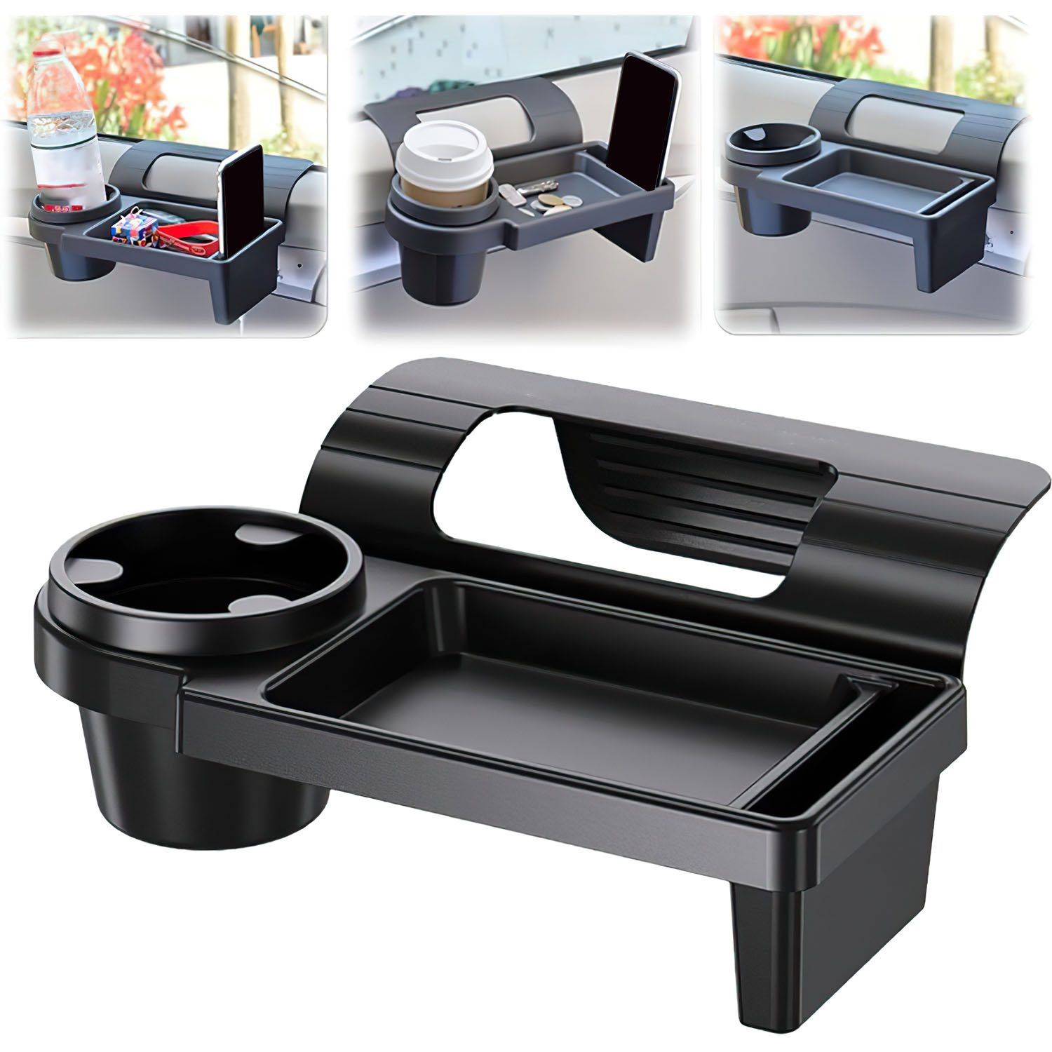 Vielseitiges Design Durch die nahtlose Integration eines Handyhalters, eines Getränkehalters und einer vielseitigen Ablage sorgt diese Autofenster-Aufbewahrungsbox dafür, dass Ihr Telefon, Ihr Getränk, Ihre Schlüssel oder andere Must-Haves jeweils den perfekten Platz finden.