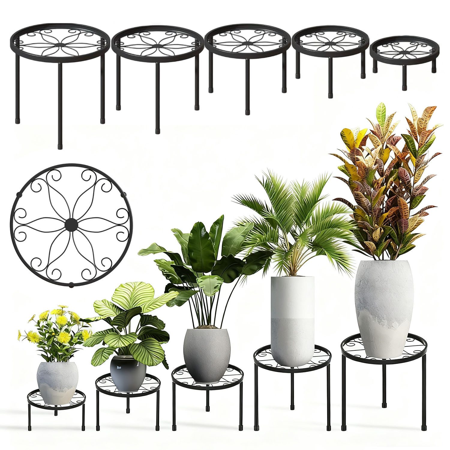 [5-size Pack Metall Pflanzenständer]: Aus starkem Metall gefertigt, trägt bis zu 60 kg. Ideal für schwere Blumentöpfe oder Pflanzgefäße im Innen- und Außenbereich.