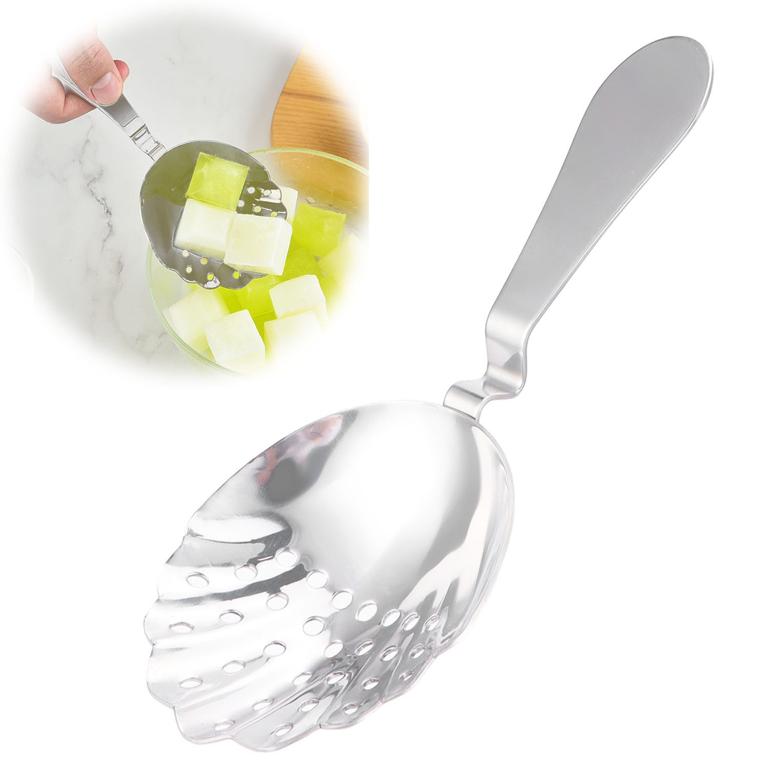 SURFOU Eislöffel Edelstahl-Barsieb Eislöffel Sieb Filter Barzubehör Perforierter Löffel (1 Stück), Barzubehör Zubehör Eiswürfel-Siebschaufel