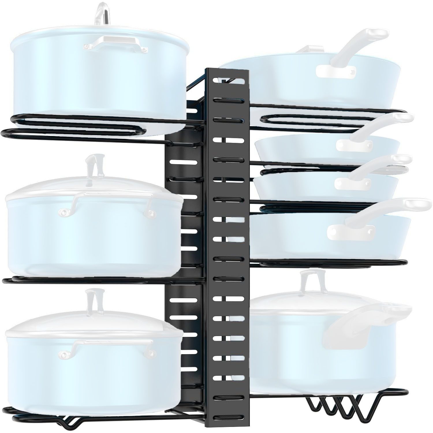 Ordnung bewahren : Mit diesem Pfannenregal hat das Chaos im Küchenschrank ein Ende. Organisieren Sie Pfannen, Topfdeckel, Teller und Schneidebretter mit unserem Pfannenhalter.