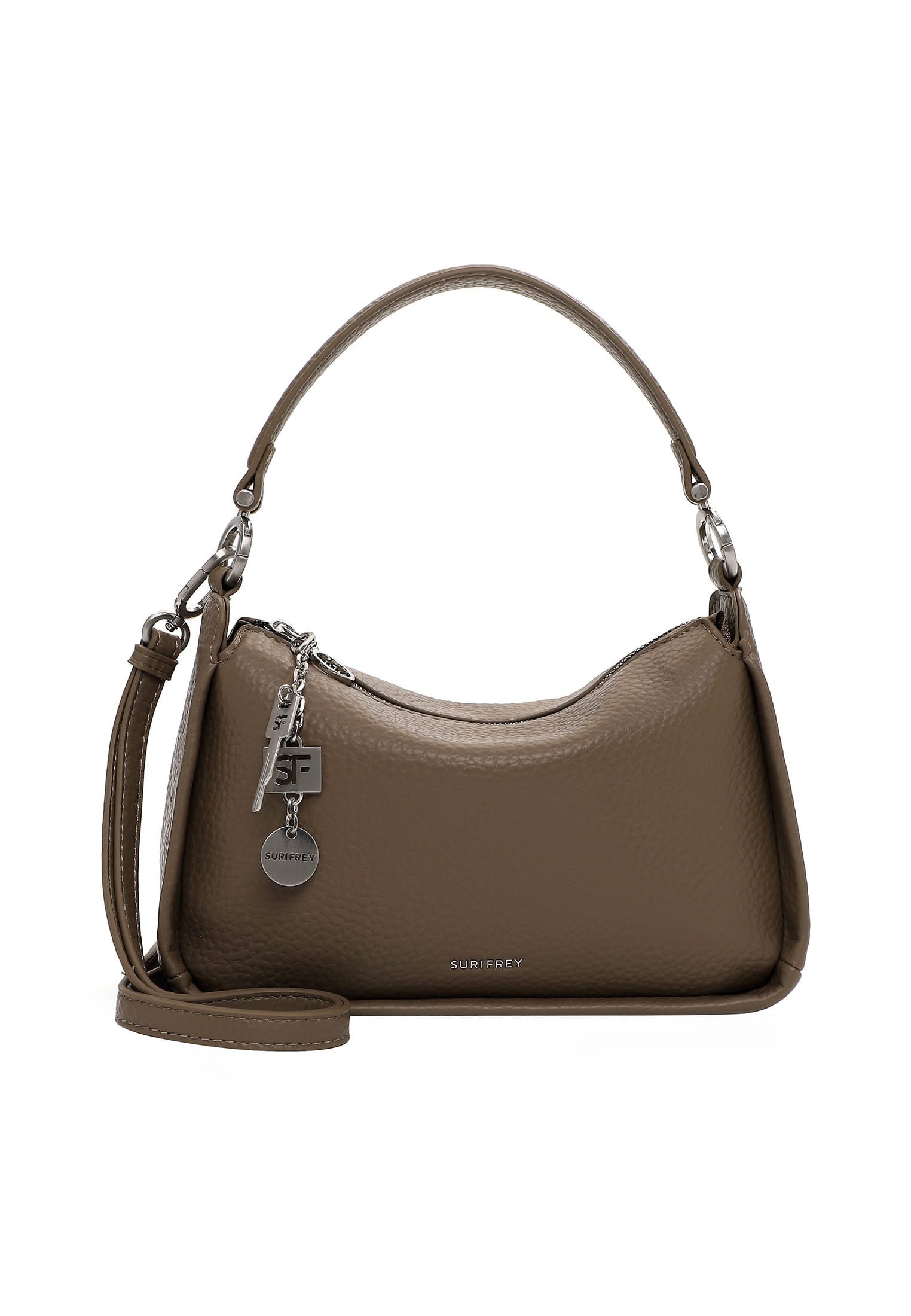 SURI FREY - die Marke für Frauen mit Mode- und Selbstbewusstsein Eine Handtasche ist der Spiegel der Persönlichkeit einer Frau. Ob aufgeräumt oder leicht chaotisch - man muss sie einfach lieben! SFY Buffey ist der wunderschöne Beutel in Uni-Design mit Logo-Prägung, der wahre Persönlichkeit ausstrahlt. Ein unverzichtbarer Begleiter im Alltag - der Beutel. Es ist so einfach, für alle Eventualitäten gerüstet zu sein. Gefertigt ist das Modell, das sich mit einem Reißverschluss verschließen lässt, aus Feinsynthetik. Durch das Material ist es angenehm im Griff. Ein optisches Highlight ist der Beutel mit Echtleder-Optik und dem Uni-Design. SURI FREY kennt die Wünsche ihrer begeisterten Kundinnen genau und sie weiß, was sie verbindet - Lebensfreude und Freundschaft. Und genau das spiegeln die Produkte des angesagten Modelabels wider. Ordnung ist das halbe Leben. Ein übersichtliches Hauptfach sind in der Tasche integriert. Mit einem Rückfach mit Reißverschluss hat man extra Stauraum und leichten Zugriff auf alle wichtigen Dinge. Für alle, die eine weiche Haptik lieben - SFY Buffey ist angenehm anschmiegsam. Eine Logo-Prägung schmückt optisch und hebt das ausgefallene Design dieses neuen Favoriten hervor. Dieses neue Lieblingsstück wird einfach und bequem als Schultertasche getragen. Die perfekte Размер für alles, auf das man unterwegs nicht verzichten kann - hier passt sogar ein kleines Täschchen für Schminke und Co. mit rein.