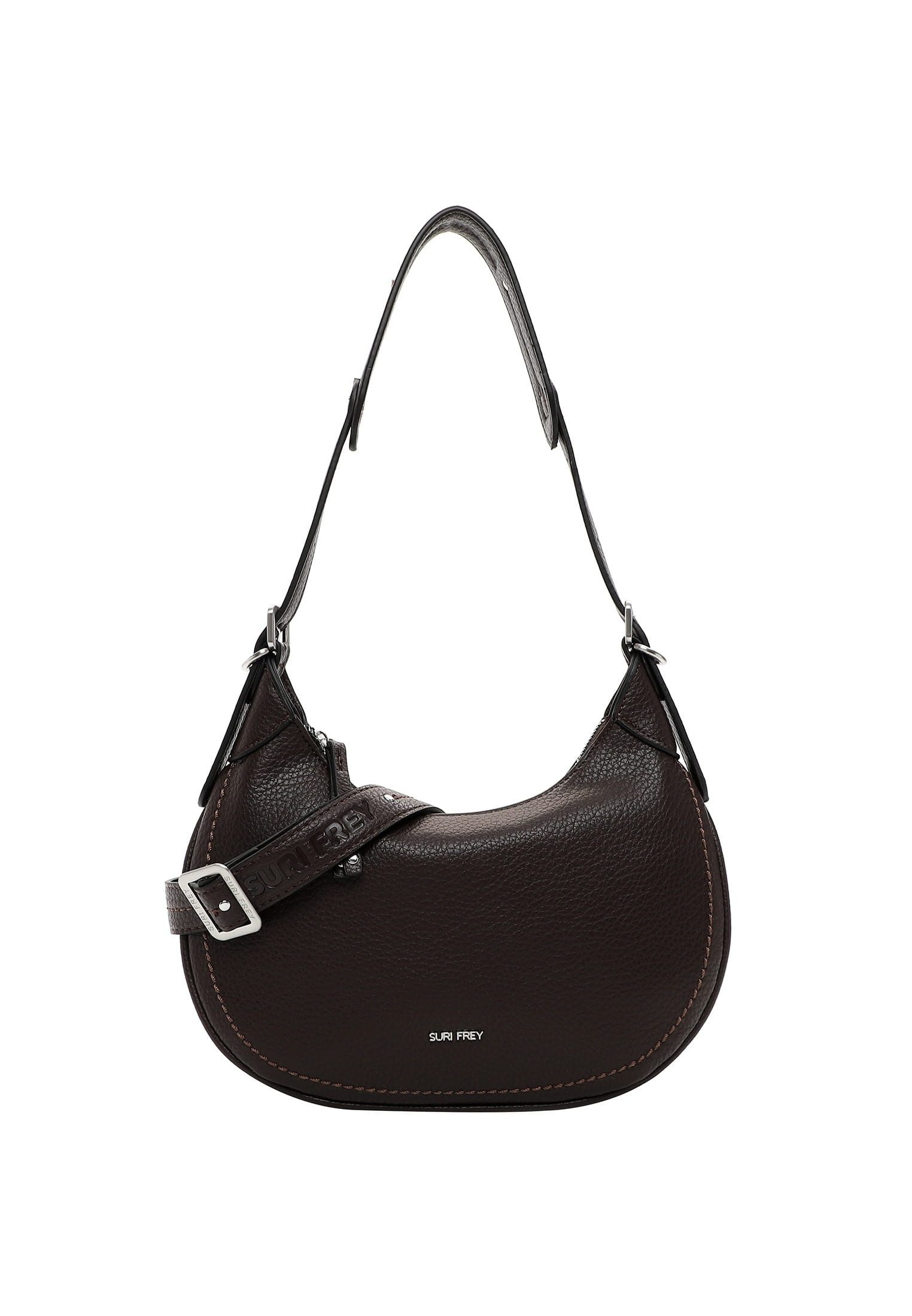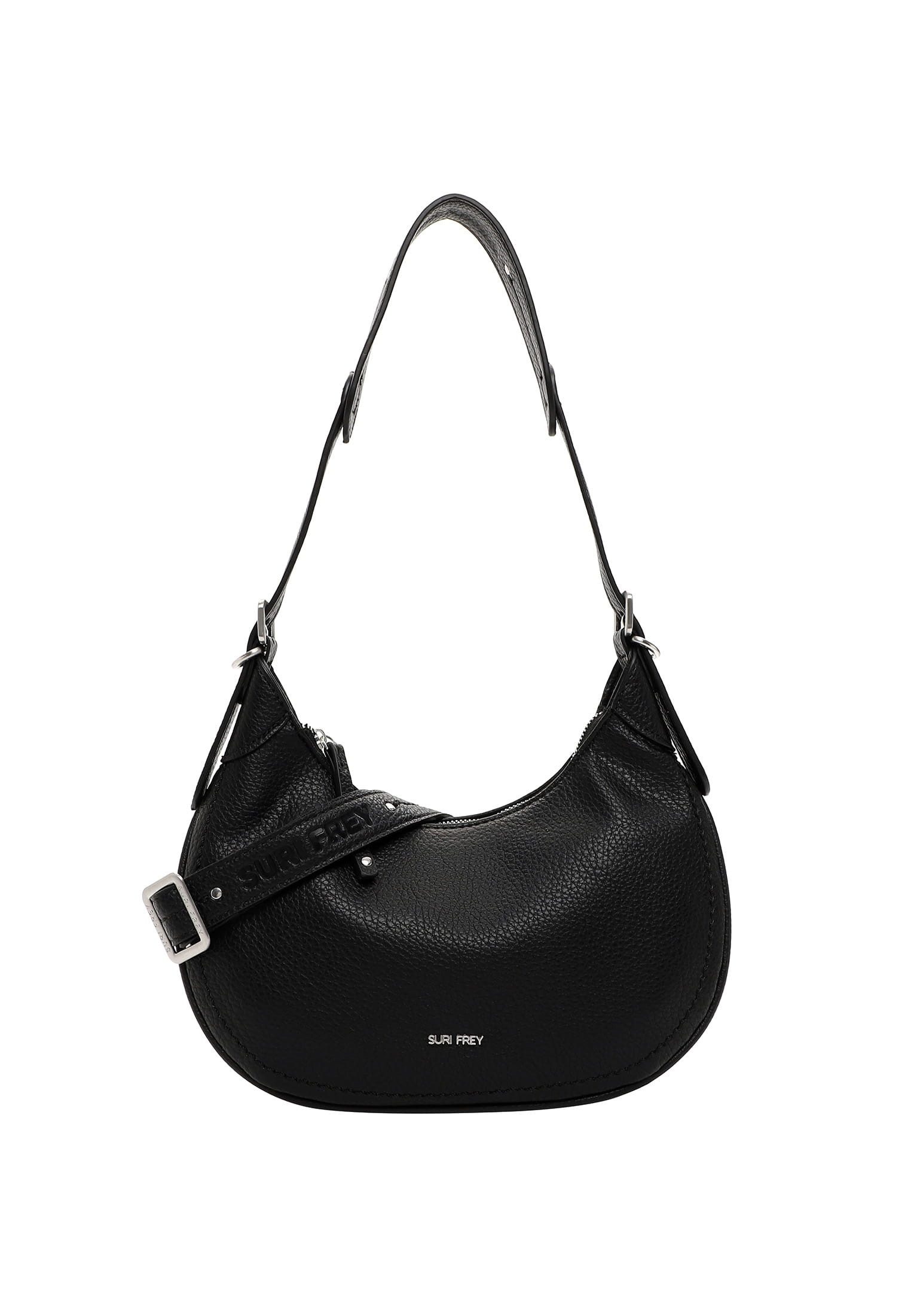 SURI FREY - die Marke für “freye" Frauen Authentisch, selbstbewusst und brillant - so präsentieren sich Frauen in ihrem aufregenden Alltag. Selbstverständlich am liebsten mit ihrer Lieblingstasche. Der Beutel SFY Henny kommt aus Feinsynthetik mit Reißverschluss und sieht einfach gut aus. Er ist ein lässiges Statement für den Alltag. Ein Beutel auf den man zählen kann. Das Modell besteht aus Feinsynthetik und lässt sich mit einem Reißverschluss verschließen. Ein optisches Highlight ist der Beutel mit Echtleder-Optik und dem Uni-Design. Die tollen Accessoires von SURI FREY stehen für Freiheit, Lebenslust und Offenheit - genau das, was Frauen mit Selbstbewusstsein ausstrahlen. Ordnung ist das halbe Leben. Ein übersichtliches Hauptfach sind in der Tasche integriert. Ein Reißverschluss-Fach auf der Rückseite sorgt für zusätzlichen Stauraum und ermöglicht den einfachen Zugang zu Dingen, die man immer parat haben möchte. Für alle, die eine weiche Haptik lieben - SFY Henny ist angenehm anschmiegsam. Single Lettering schmückt optisch und hebt den einzigartigen Look dieses neuen Favoriten hervor. Über der Schulter ist dieses Modell dem abnehmbaren Tragegriff zu tragen. Klein aber fein! In diesen kleinen Beutel passt alles, was man bei einer Abendveranstaltung braucht.