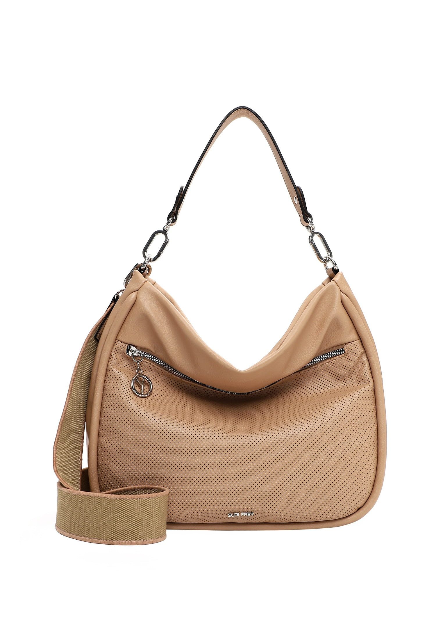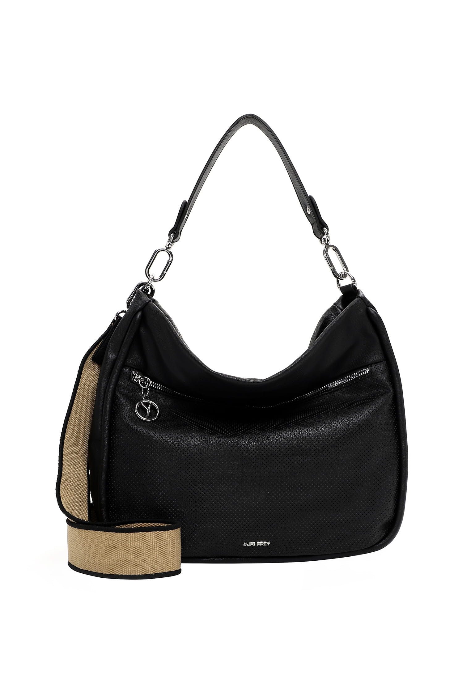 SURI FREY - die Marke für “freye" Frauen Eine Handtasche ist wie eine gute Freundin, sie lässt einen nie im Stich und sie ist immer da, wenn es drauf ankommt. Mit SFY Patsy - dem schicken Beutel in Uni-Design mit Reißverschluss - ist die liebste neue Begleitung im Alltag jederzeit dabei. Ob für Office, Uni oder in der freien Zeit - mit ihm lässt sich jedes Abenteuer bestreiten. Gefertigt ist das Modell, das sich mit einem Reißverschluss verschließen lässt, aus Feinsynthetik. Durch das Material ist es angenehm im Griff. Die Lasercut-Optik und das Uni-Design sind fein gearbeitet und verleihen dem Beutel einen edlen Look. SURI FREY kennt die Wünsche ihrer Bewunderer genau und sie weiß, was sie verbindet - Offenheit, Lebensfreude und Freundschaften. Und genau das spiegeln die Produkte des angesagten Modelabels wider. Ordnung ist das halbe Leben. Ein übersichtliches Hauptfach sind in der Tasche integriert. Ein Rückfach mit Reißverschluss schafft zusätzlichen Stauraum und ermöglicht den einfachen Zugang zu Dingen, die man zügig parat haben möchte. Das Modell SFY Patsy ist von der Haptik eher weich und daher besonders angenehm zu tragen. Für das gewisse Extra sorgt die Applikation mit Single Lettering, die direkt ins Auge fällt. Über der Schulter ist dieses Modell mit dem angenehmen, längenverstellbaren und abnehmbaren Umhängeriemen und dem abnehmbaren Tragegriff zu tragen. Manchmal braucht man etwas mehr Platz im Beutel - für solche Fälle eignet sich das Modell perfekt, weil hier wirklich alles hineinpasst, auf das man als Frau einfach nicht verzichten möchte.