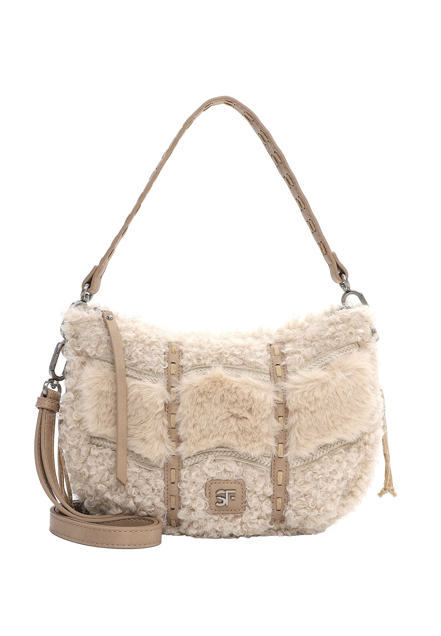 Selbstbewusst und "frey" - SURI FREY Eine Handtasche zeigt die Persönlichkeit einer Frau. Ob aufgeräumt oder leicht chaotisch - man muss sie einfach lieben! SFY Resy ist der wunderschöne Beutel in Kunstpelz-Optik mit Logo-Patch, der echte Persönlichkeit ausstrahlt. Er ist ein lässiges Statement für den Alltag. Ein Beutel auf den immer Verlass ist. Das Modell besteht aus Feinsynthetik und lässt sich mit einem Reißverschluss verschließen. Ein optisches Highlight ist der Beutel mit Kunstpelz-Optik und dem Animal-Design. SURI FREY kennt die Wünsche ihrer Fans genau und sie weiß, was sie alle verbindet - Freundschaft und Lebensfreude. Und genau das spiegeln die Produkte des angesagten Modelabels wider. Ordnung ist das halbe Leben. Ein übersichtliches Hauptfach sind in der Tasche integriert. Für alle, die eine weiche Haptik lieben - SFY Resy ist angenehm anschmiegsam. Für das gewisse Extra sorgt die Applikation mit dem Logo-Patch, die zum verspielten Blickfang wird. Mit dem abnehmbaren Tragegriff wird der neue Lieblingsbegleiter ganz locker über der Schulter getragen. Die perfekte Размер für alles, was man unterwegs so braucht - hier passt sogar ein kleines Täschchen für das Makeup mit rein.