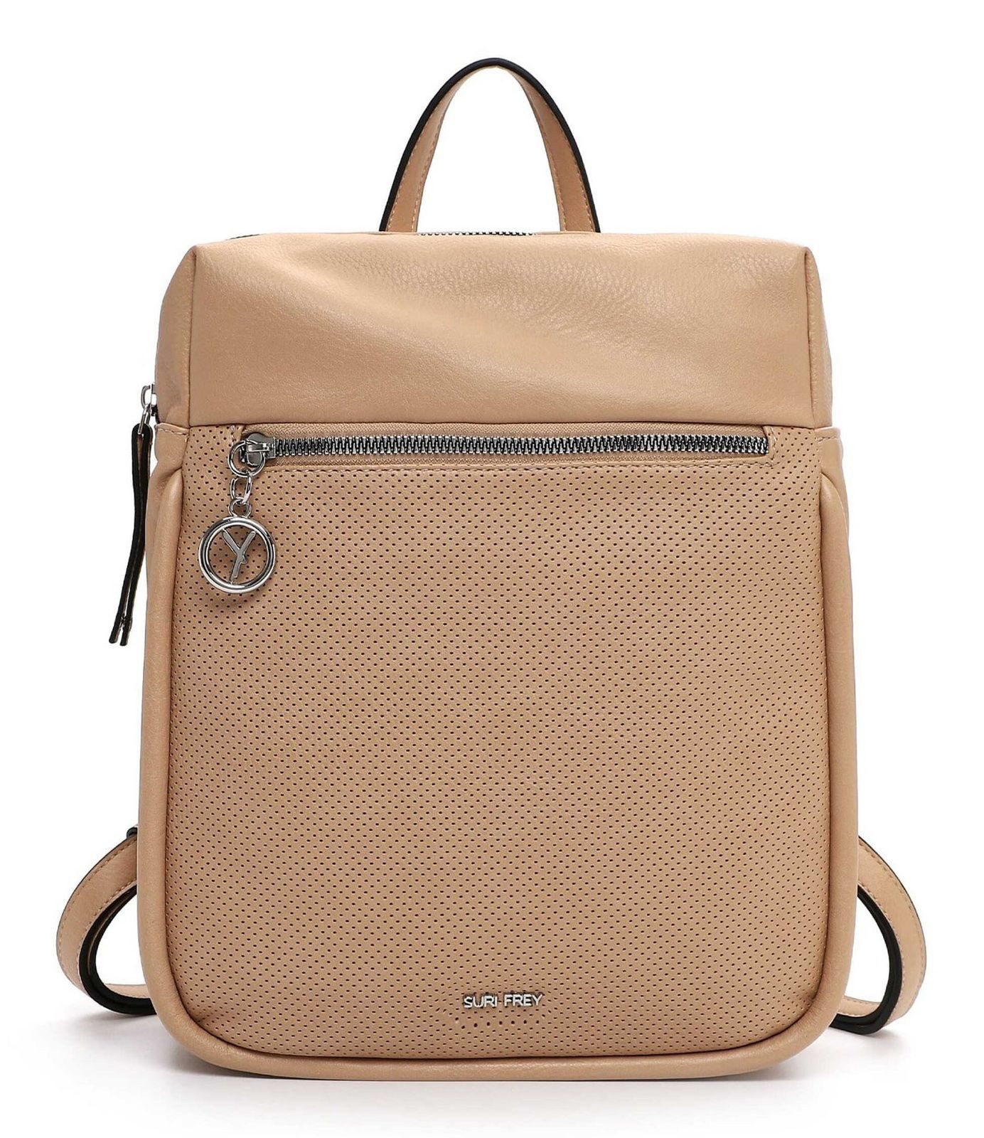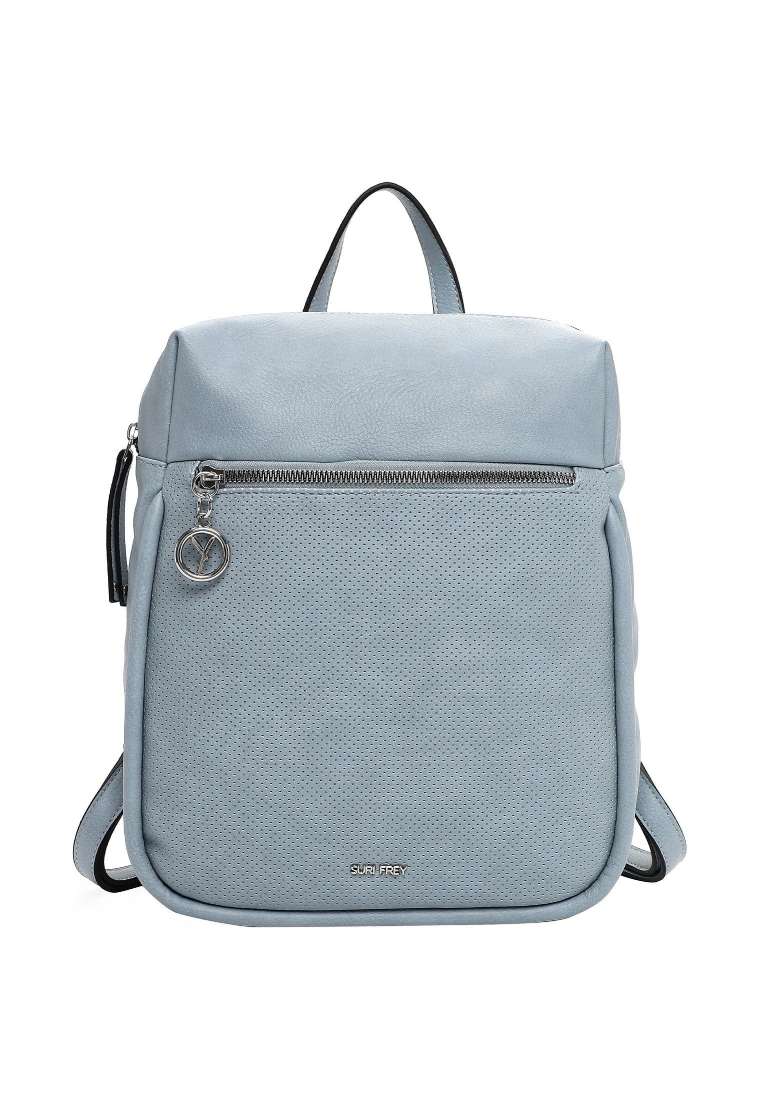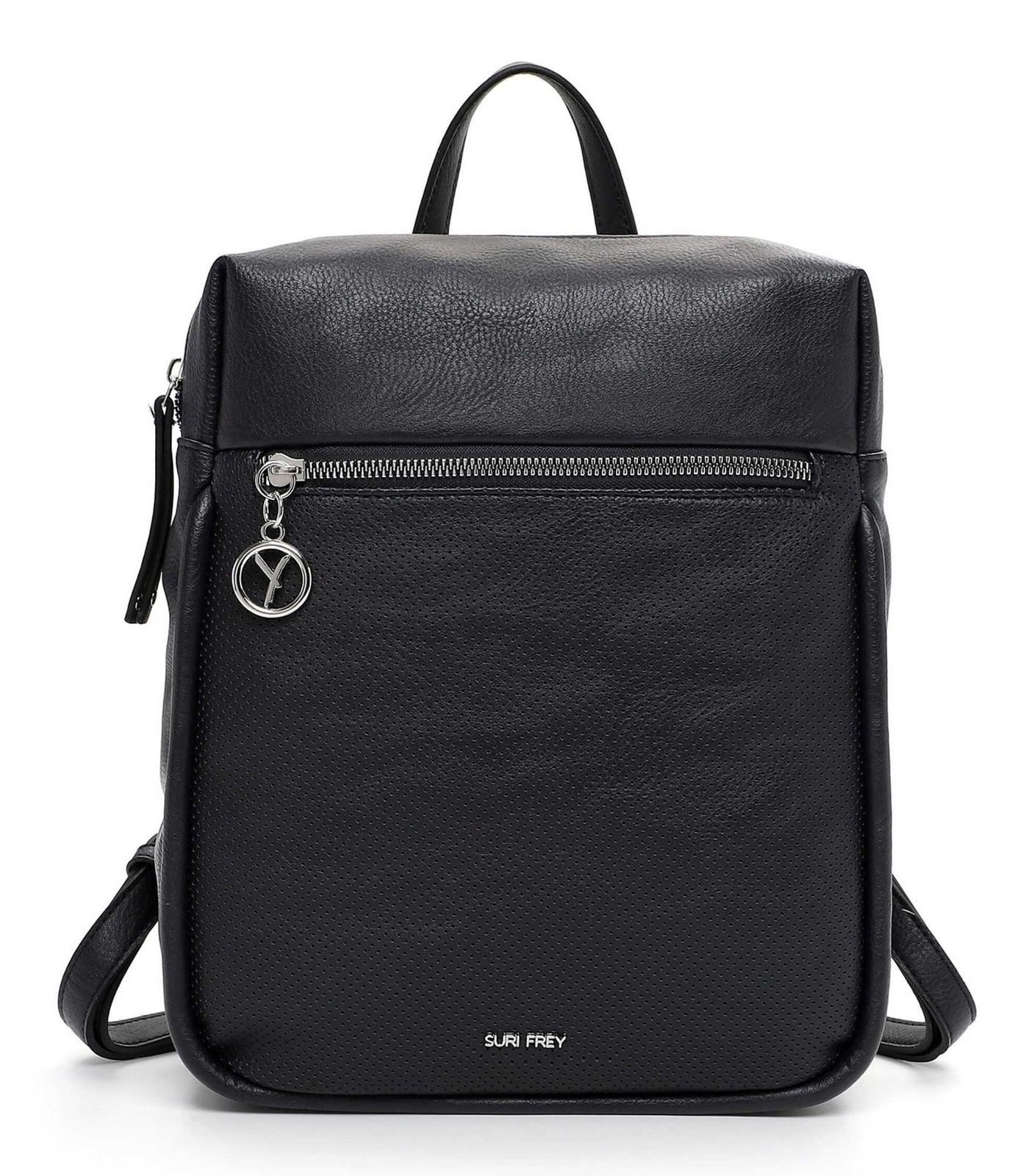 "Frey" und selbstbewusst - SURI FREY Ein Rucksack erleichtert den Alltag immens - wenn er dann auch noch attraktiv aussieht, kann die Handtasche auch schon mal im Schrank bleiben. Der Rucksack SFY Patsy kommt in Lasercut-Optik mit zwei stufenlos verstellbaren Rückenriemen und bietet ausreichend Platz für alles, was unterwegs dabei sein muss. Ein unverzichtbarer Begleiter im Alltag - der Rucksack. Es ist so einfach, immer perfekt ausgerüstet zu sein. Gefertigt ist das Modell, das sich mit einem Reißverschluss verschließen lässt, aus Feinsynthetik. Durch das Material ist es angenehm im Griff. Die Lasercut-Optik und das Uni-Design sind fein gearbeitet und verleihen dem Rucksack einen edlen Look. Die stylischen Accessoires von SURI FREY stehen für Offenheit und Toleranz - genau das, was selbstbewusste Frauen ausmacht. Ordnung ist das halbe Leben. Ein übersichtliches Hauptfach sind in der Tasche integriert. Dank eines Rückfaches mit Reißverschluss hat man zusätzlichen Stauraum und leichten Zugriff auf alle relevanten Dinge. Das Modell SFY Patsy ist von der Haptik eher weich und daher besonders angenehm zu tragen. Für das besondere Extra sorgt die Applikation mit Single Lettering, die einen zusätzlichen Akzent setzt. Dieser neue Lieblingsbegleiter wird dank zwei stufenlos verstellbaren Rückenriemen und Hängeschlaufe sowie Tragegriff einfach auf dem Rücken getragen. Mit dem mittelgroßen Rucksack lassen sich Haustürschlüssel, Portemonnaie, Smartphone und Co. problemlos transportieren.