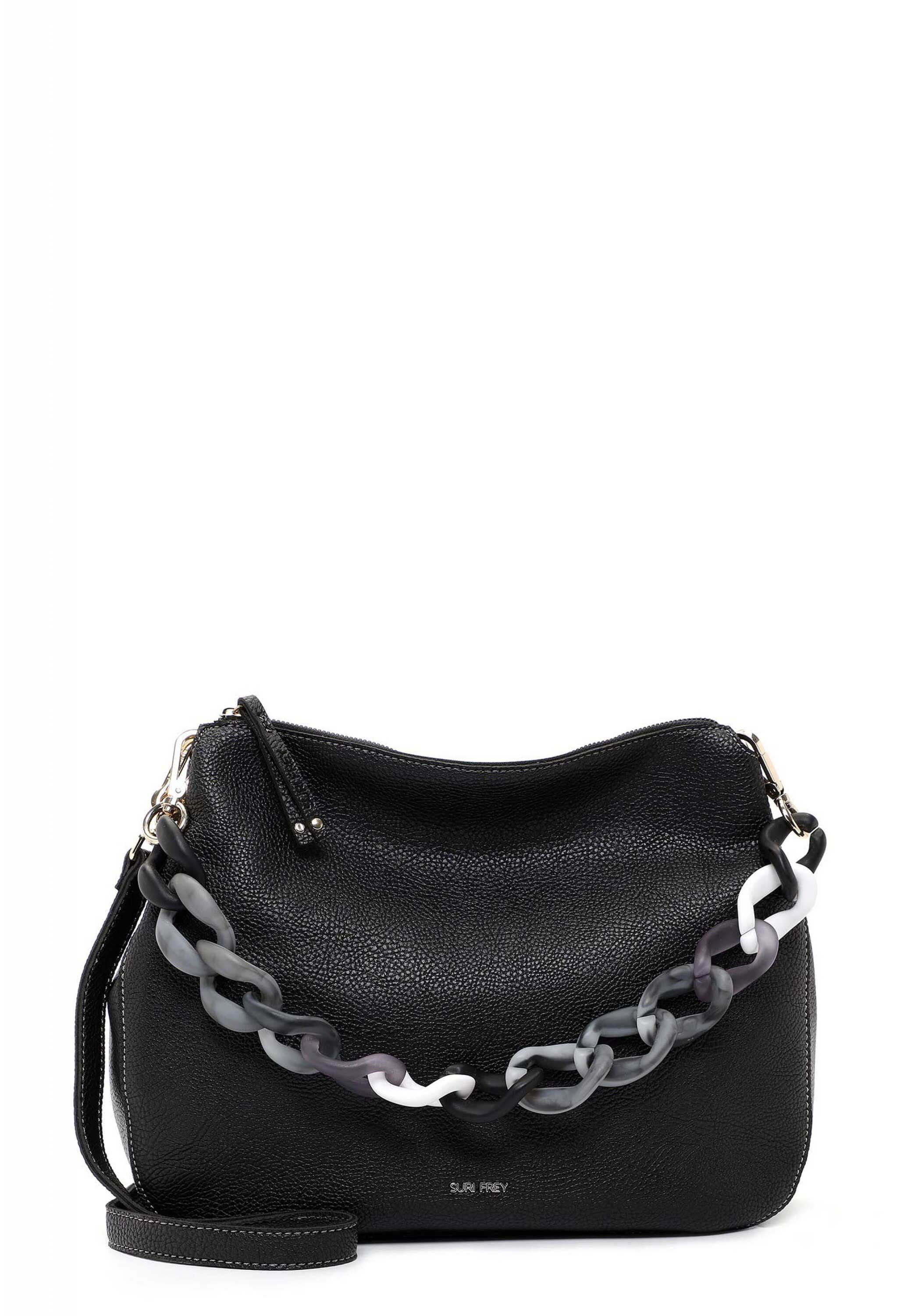 Persönlichkeit zeigen - mit SURI FREY Eine Handtasche zeigt die Persönlichkeit einer Frau. Ob hundertpro geordnet oder leicht chaotisch - Frauen lieben sie einfach! Der Beutel Candy kommt aus Feinsynthetik mit Reißverschluss und sieht einfach toll aus. Ein wahrer Alltagsbegleiter - der Beutel. Es ist so einfach, auch im größten Trubel gut auszusehen. Die Produkte des beliebten Labels SURI FREY stehen für tierfreundliche Styles sowie Designs und nutzen gänzlich vegane Inhaltsstoffe. Das beweist auch das durch die PETA vergebene Logo „PETA-Approved Vegan“, das für beste Standards bei der Применитьung ohne tierische Inhaltsstoffe steht. Das Modell besteht aus Feinsynthetik und lässt sich mit einem Reißverschluss verschließen. Mit seiner Echtleder-Optik und dem Uni-Design ist der hochwertige Beutel ein echter Hingucker. SURI FREY kennt die Wünsche ihrer Fans genau und sie weiß, was sie verbindet - Freundschaft und Lebensfreude. Und genau das spiegeln die Produkte des angesagten Modelabels wider. Der Beutel hat ein übersichtliches Hauptfach. Das Reißverschluss-Fach auf der Rückseite ist perfekt, um weiteren Stauraum zu bieten und Dinge unkompliziert griffbereit zu haben. Für alle, die eine weiche Haptik lieben - Candy ist angenehm anschmiegsam. Ein Emblem schmückt optisch und hebt den einzigartigen Look dieses neuen Favoriten hervor. Über der Schulter ist dieses Modell mit dem praktischen, längenverstellbaren und abnehmbaren Umhängeriemen und dem Tragegriff zu tragen. Mit dem mittelgroßen Beutel lassen sich Schlüssel, Portemonnaie, Handy und Co. problemlos transportieren. Der Artikel hat eine Abmessung von 35 x 27 x 10 cm (B/H/T).