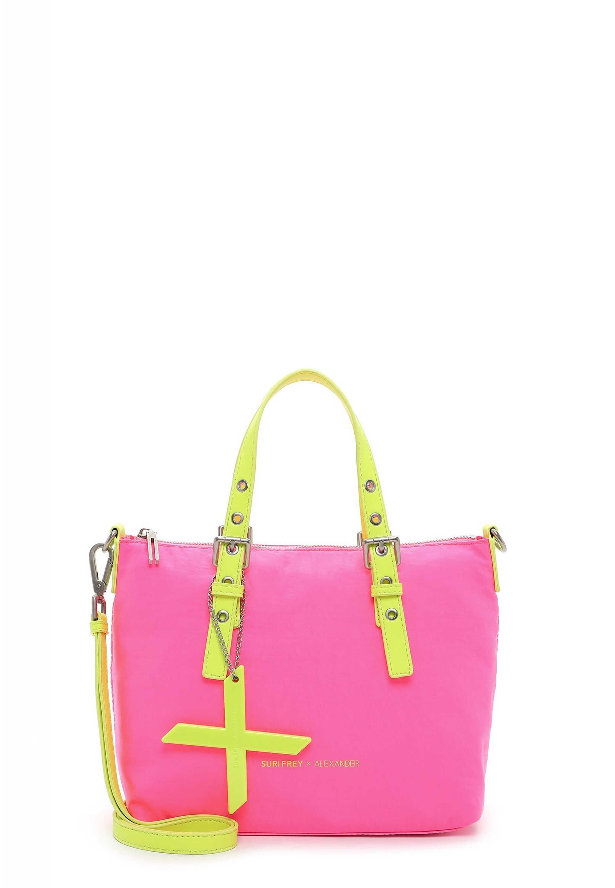 Individuelle Persönlichkeit zeigen - mit SURI FREY Eine Handtasche ist wie eine beste Freundin, sie lässt einen nie im Stich und man kann sich hundertpro auf sie verlassen. SFY SURI FREY X ALEXANDER ist der wunderschöne Shopper in Nylon-Optik mit längenverstellbarem, abnehmbarem Umhängeriemen, der wahre Persönlichkeit ausstrahlt. Ein wahrer Alltagsbegleiter - der Shopper. Es ist so einfach, auch im größten Trubel gut auszusehen. Die Marke SURI FREY bietet tierfreundliche Styles und Designs an, die ausschließlich aus veganen Inhaltsstoffen hergestellt sind. Dafür steht besonders das durch die PETA vergebene Logo „PETA-Approved Vegan“, welches beste Standards bei der Produktion ohne tierische Inhaltsstoffe auszeichnet. Das Modell besteht aus Nylon und lässt sich mit einem Reißverschluss verschließen. Die Nylon-Optik und das Uni-Design sind fein gearbeitet und verleihen dem Shopper einen edlen Look. Wer viel draußen ist, will einfach immer einen besonderen Auftritt hinlegen. SURI FREY hat genau die Accessoires, die so gut gefallen und die jedes Outfit gekonnt vervollständigen. Ordnung ist das halbe Leben. Ein übersichtliches Hauptfach sind in der Tasche integriert. Für alle, die eine weiche Haptik lieben - SFY SURI FREY X ALEXANDER ist angenehm anschmiegsam. Für das besondere Extra sorgt die Applikation mit der Logo-Prägung, die zum verspielten Blickfang wird. Mit einem praktischen, längenverstellbaren und abnehmbaren Umhängeriemen und den zwei Tragegriffen wird der neue Lieblingsbegleiter ganz entspannt als Schultertasche getragen. Manchmal braucht man mehr Platz im Shopper - für solche Fälle eignet sich das Modell ideal, weil hier wirklich alles hineinpasst, auf das man als Frau auch unterwegs angewiesen ist.