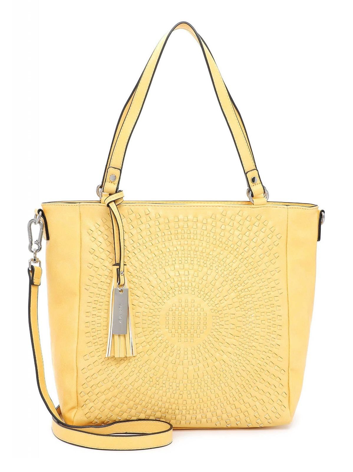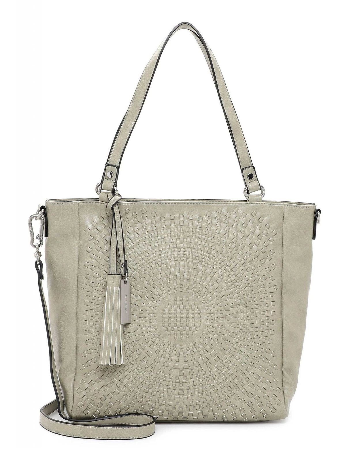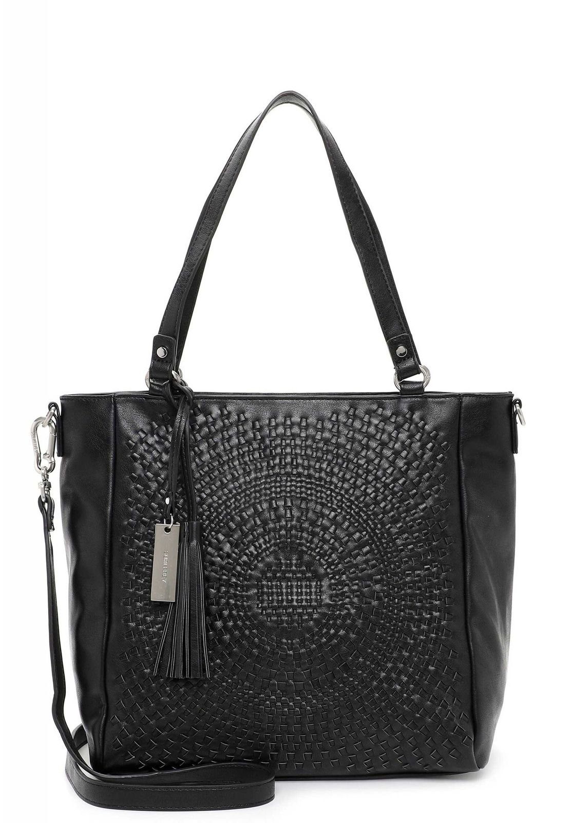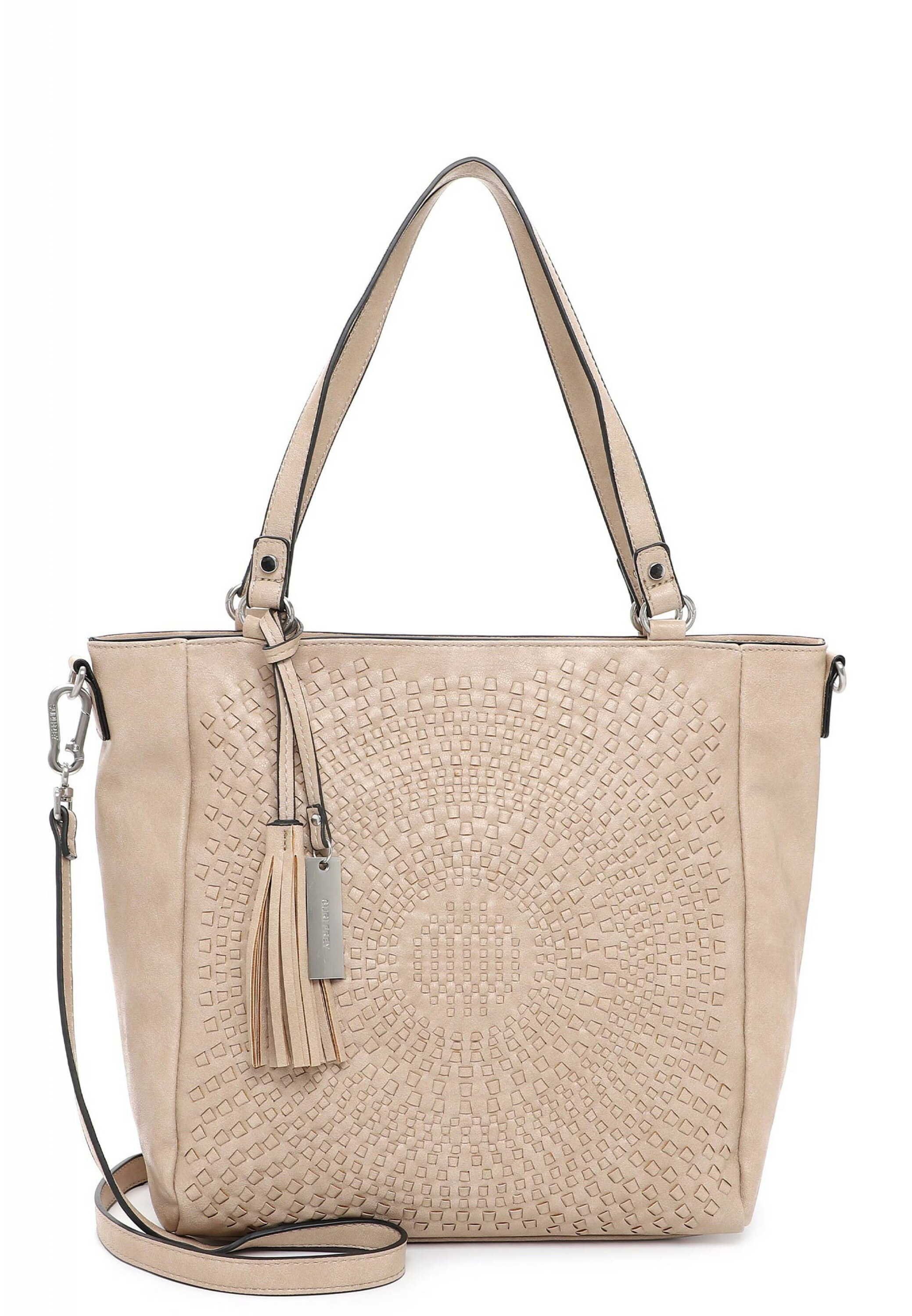 "Frey" und modebewusst - SURI FREY Natürlich, selbstbewusst und brillant - so zeigen sich Frauen im Alltag. Übrigens am liebsten mit ihrer Lieblingstasche. Der Shopper Ruby kommt in Flecht-Optik mit Logo-Anhänger und sieht einfach gut aus. Er ist ein lässiges Statement für den Alltag. Ein Shopper auf den immer Verlass ist. Die Marke SURI FREY bietet tierfreundliche Styles und Designs an, die einzig und allein aus veganen Inhaltsstoffen hergestellt sind. Dafür steht besonders das durch die PETA vergebene Logo „PETA-Approved Vegan“, welches höchste Standards bei der Produktion ohne tierische Inhaltsstoffe sichert. Das Modell besteht aus Feinsynthetik und lässt sich mit einem Reißverschluss verschließen. Mit seiner Flecht-Optik und dem Mustermix-Design ist der hochwertige Shopper ein echter Hingucker. Wer viel unterwegs ist, will einfach immer einen besonderen Auftritt hinlegen. SURI FREY hat genau die Accessoires, die Frauen lieben und die jedes Outfit mit Stil vervollständigen. Ordnung ist das halbe Leben. Ein übersichtliches Hauptfach sind in der Tasche integriert. Aufgrund des Reißverschluss-Fachs auf der Rückseite hat man extra Stauraum und leichten Zugriff auf alle relevanten Dinge. Für alle, die eine weiche Haptik lieben - Ruby ist angenehm anschmiegsam. Für das gewisse Extra sorgt die Applikation mit dem Logo-Anhänger, die direkt ins Auge fällt. Über der Schulter ist dieses Modell mit dem angenehmen, längenverstellbaren und abnehmbaren Umhängeriemen und den zwei Tragegriffen zu tragen. Im hübschen Shopper ist Platz für alles - sogar für ein kleines Geschenk für die Gastgeber der aufregenden Party oder ein paar Pralinen für die Schwiegermutter. Der Artikel hat eine Abmessung von 39 x 32 x 15 cm (B/H/T).