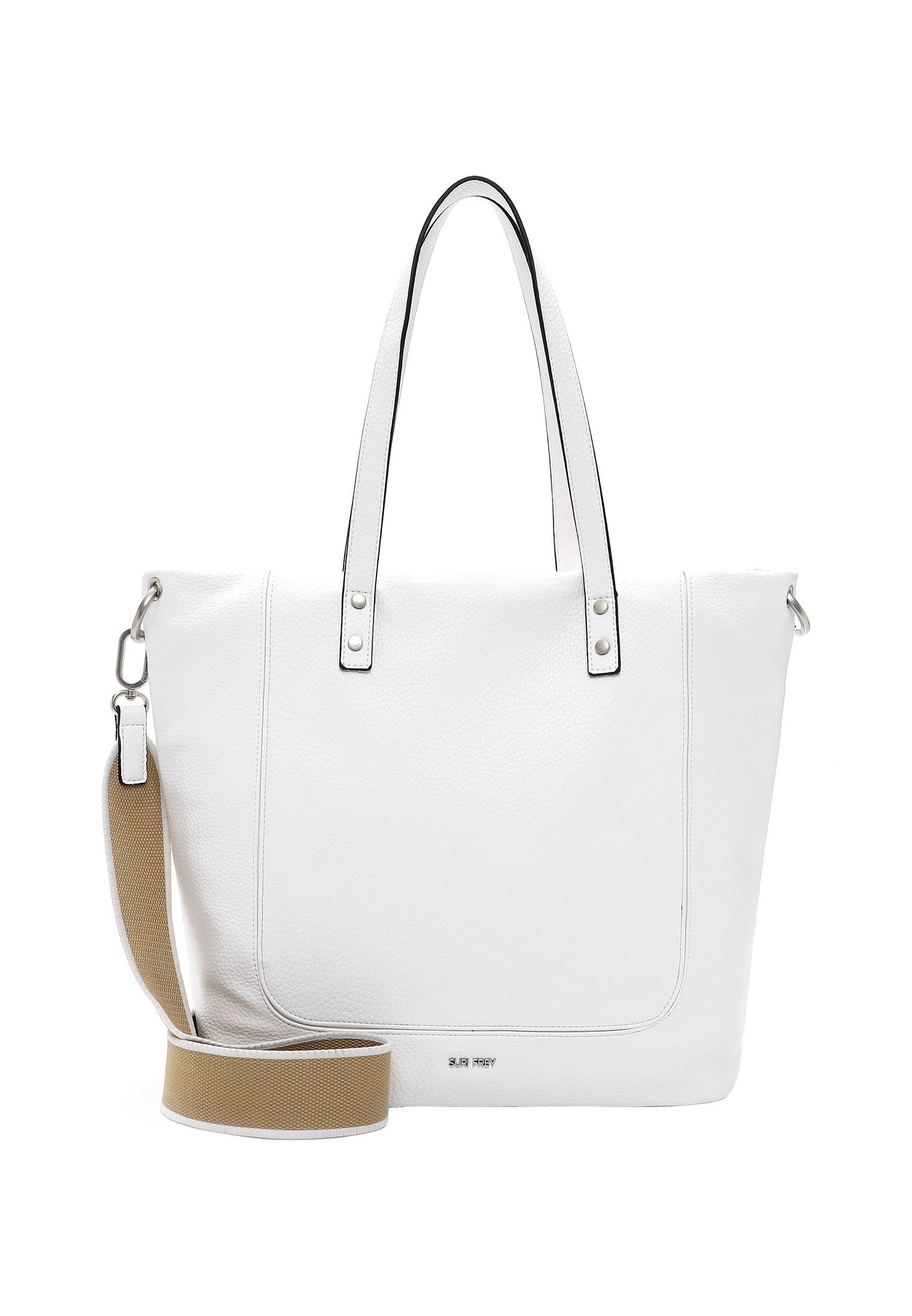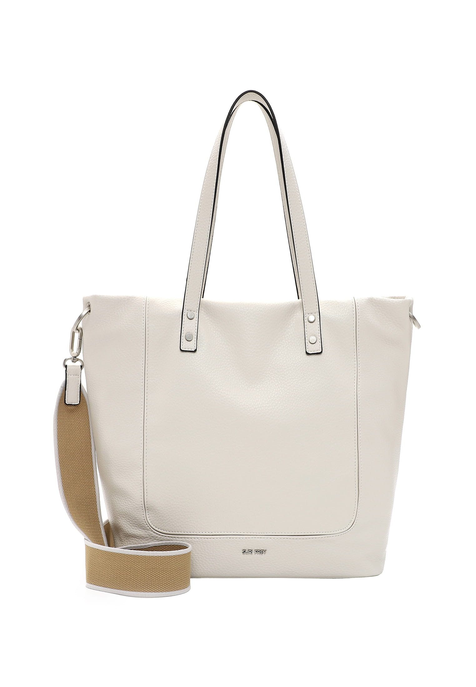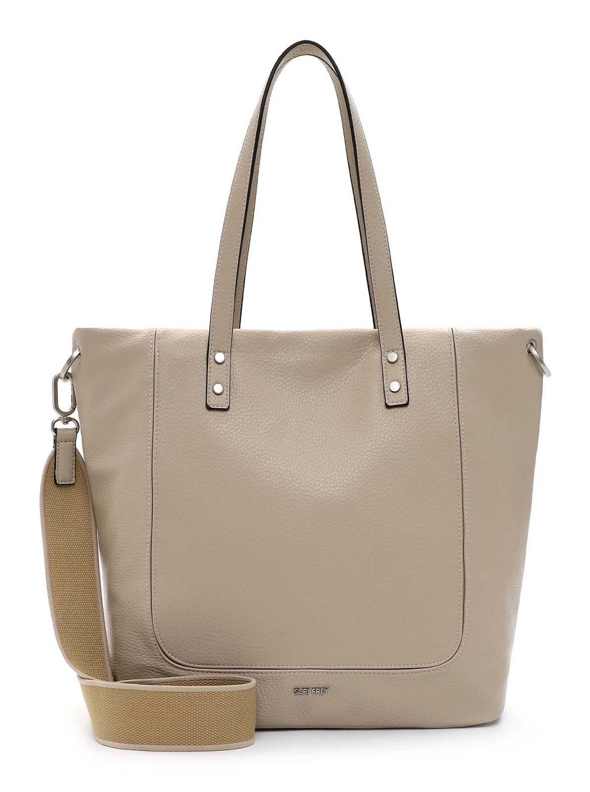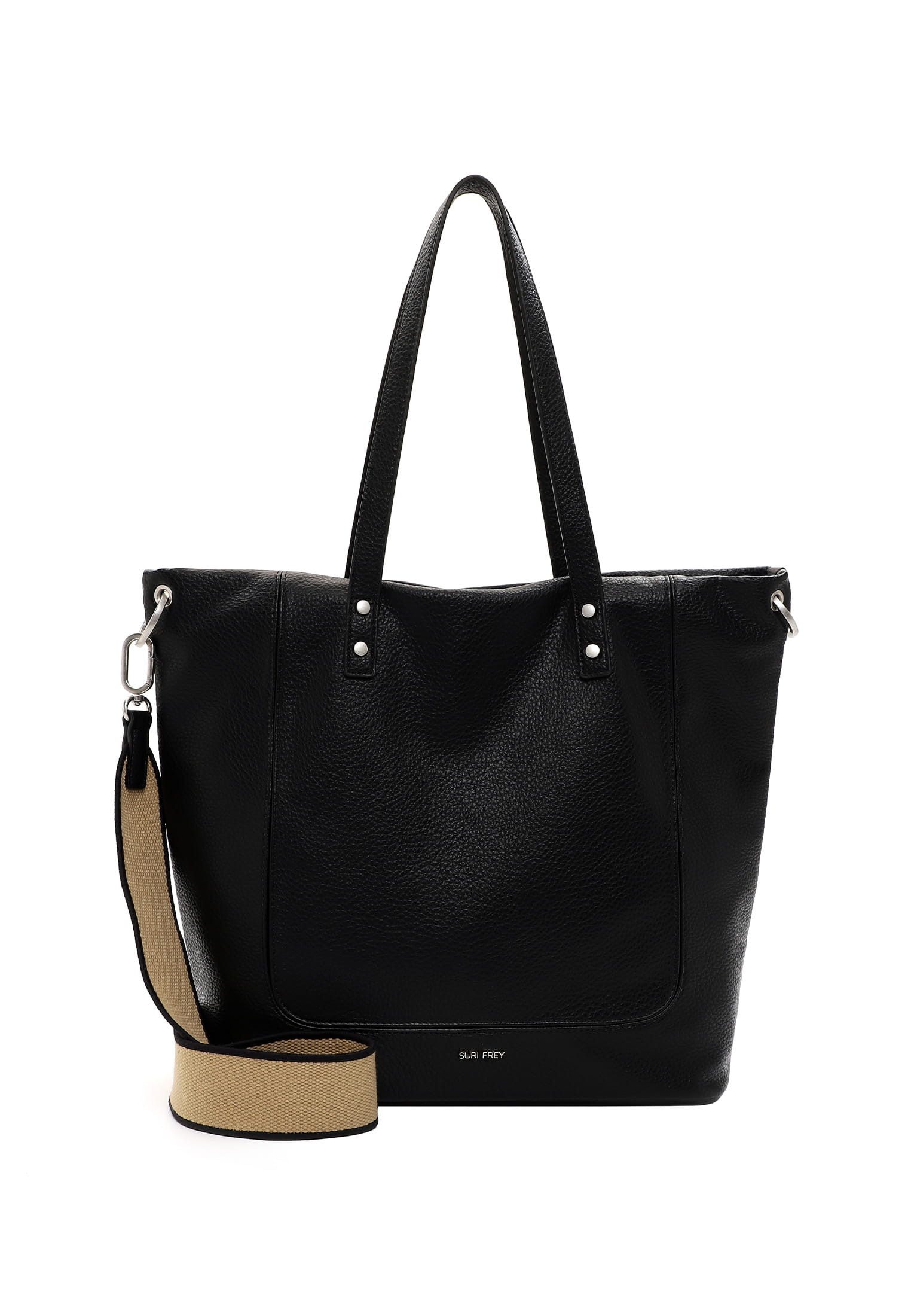 Persönlichkeit zeigen - mit SURI FREY Eine Handtasche ist wie eine gute Freundin, sie lässt einen nie im Stich und man kann sich in jedem Fall auf sie verlassen. Mit SFY Kimberly - dem schicken Shopper in Echtleder-Optik mit längenverstellbarem, abnehmbarem Umhängeriemen - ist die neue und treue Begleitung im Alltag jederzeit dabei. Ob für Büro, Uni oder in der freien Zeit - mit ihm lässt sich einfach jedes Abenteuer bestreiten. Gefertigt ist das Modell, das sich mit einem Reißverschluss verschließen lässt, aus Feinsynthetik. Durch das Material ist es angenehm im Griff. Mit seiner Echtleder-Optik und dem Uni-Design ist der hochwertige Shopper ein echter Hingucker. Wer viel unterwegs ist, will einfach immer gut aussehen. SURI FREY hat genau die Accessoires, die so gut gefallen und die jedes Outfit gekonnt vervollständigen. Der Shopper hat ein übersichtliches Hauptfach. Das Modell SFY Kimberly ist von der Haptik eher weich und daher wirklich angenehm zu tragen. Single Lettering schmückt optisch und hebt den einzigartigen Look dieses neuen Favoriten hervor. Als Umhängetasche ist dieses Modell mit dem komfortablen, längenverstellbaren und abnehmbaren Umhängeriemen und den zwei Tragegriffen zu tragen. Manchmal braucht man etwas mehr Platz im Shopper - für solche Fälle eignet sich das Modell ideal, weil hier einfach alles hineinpasst, auf das man als Frau auch unterwegs angewiesen ist.