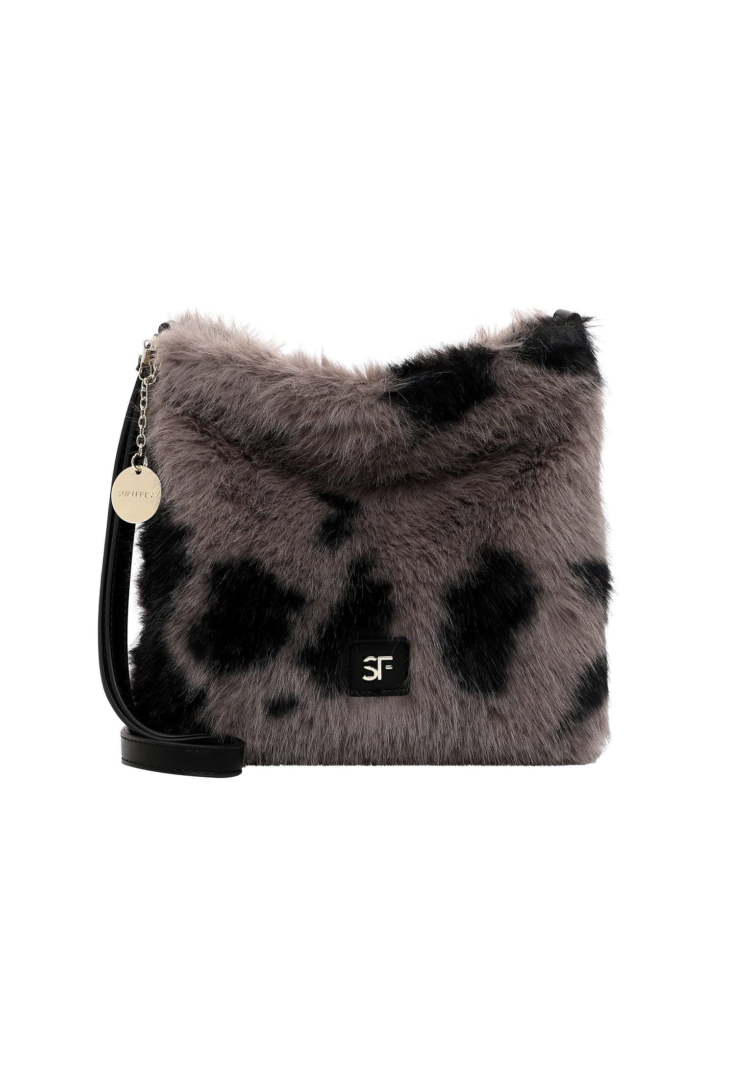 Individuelle Persönlichkeit zeigen - mit SURI FREY Eine Handtasche zeigt die Persönlichkeit einer Frau. Ob hundertpro geordnet oder etwas chaotisch - sie wird einfach heißgeliebt! Die Umhängetasche SFY Misty kommt in Kunstpelz-Optik mit Reißverschluss und sieht einfach gut aus. Ob für Office, Uni oder in der freien Zeit - mit ihr lässt sich einfach jedes Abenteuer bestreiten. Gefertigt ist das Modell, das sich mit einem Reißverschluss verschließen lässt, aus Feinsynthetik. Durch das Material ist es angenehm im Griff. Ein optisches Highlight ist die Umhängetasche mit Kunstpelz-Optik und dem Animal-Design. SURI FREY kennt die Wünsche ihrer Bewunderer genau und sie weiß, was sie verbindet - Lebensfreude und Freundschaft. Und genau das spiegeln die Produkte des angesagten Modelabels wider. Die Umhängetasche hat ein übersichtliches Hauptfach. Für alle, die eine weiche Haptik lieben - SFY Misty ist angenehm anschmiegsam. Für das süße Extra sorgt die Applikation mit dem Logo-Patch, die direkt ins Auge fällt. Mit wird der neue Lieblingsbegleiter ganz entspannt als Umhängetasche getragen. Mit der mittelgroßen Umhängetasche lassen sich Haustürschlüssel, Portemonnaie, Handy und Co. problemlos transportieren.