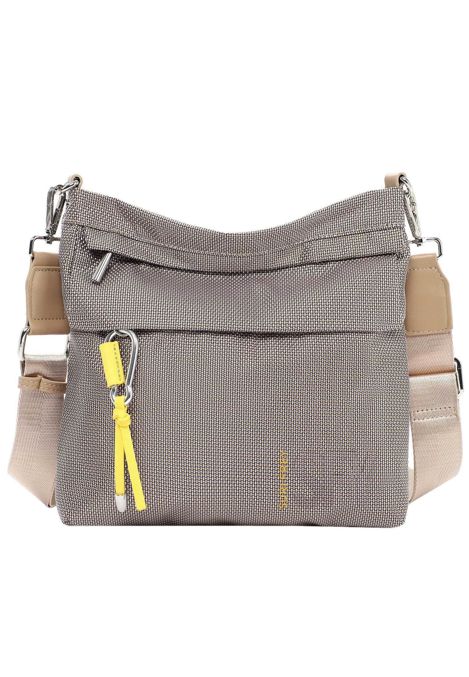 Die Außentaschen sind prima: vorne oben eine schmale für z. B. Sonnenbrille, darunter eine etwas tiefere, und hinten nochmal eine tiefe, alle jeweils mit soliden und auch noch gut aussehenden Reißverschlüsse gesichert. Auch der Tragegurt ist hübsch , stabil und aufgrund seiner Breite sehr bequem.