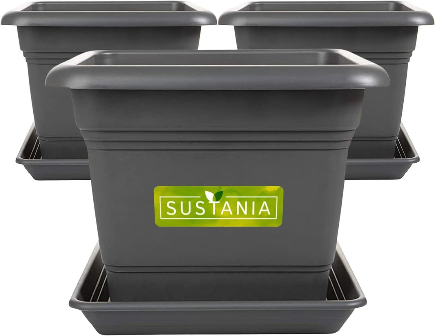 Lieferumgang: 3 Pflanztöpfe 40 x 40 x 33cm und 3 Untersetzer in Anthrazith