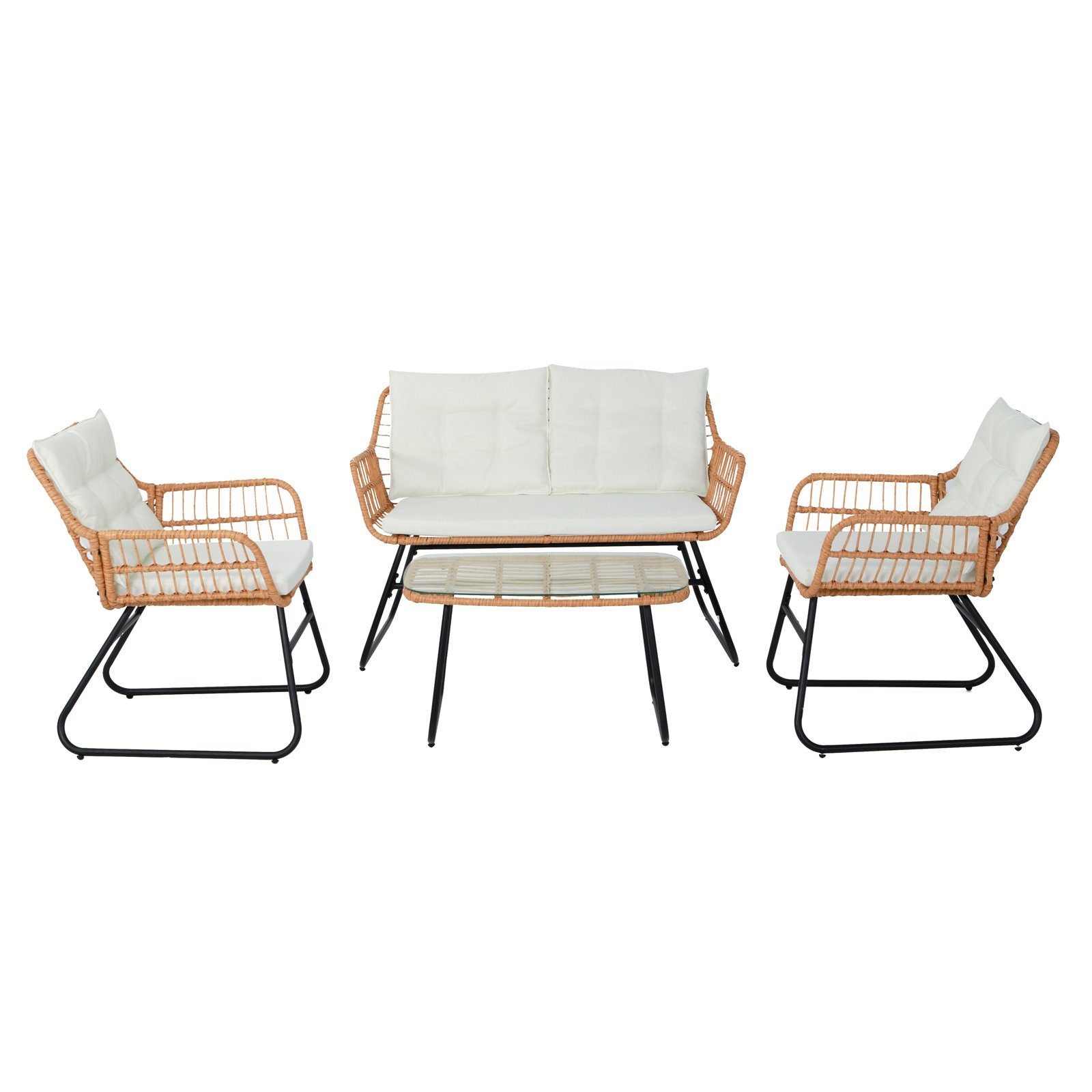 Eigenschaften | Pflegeleicht Robust Rattan-Optik Tischplatte aus Glas Sitz- und Rückenpolster |