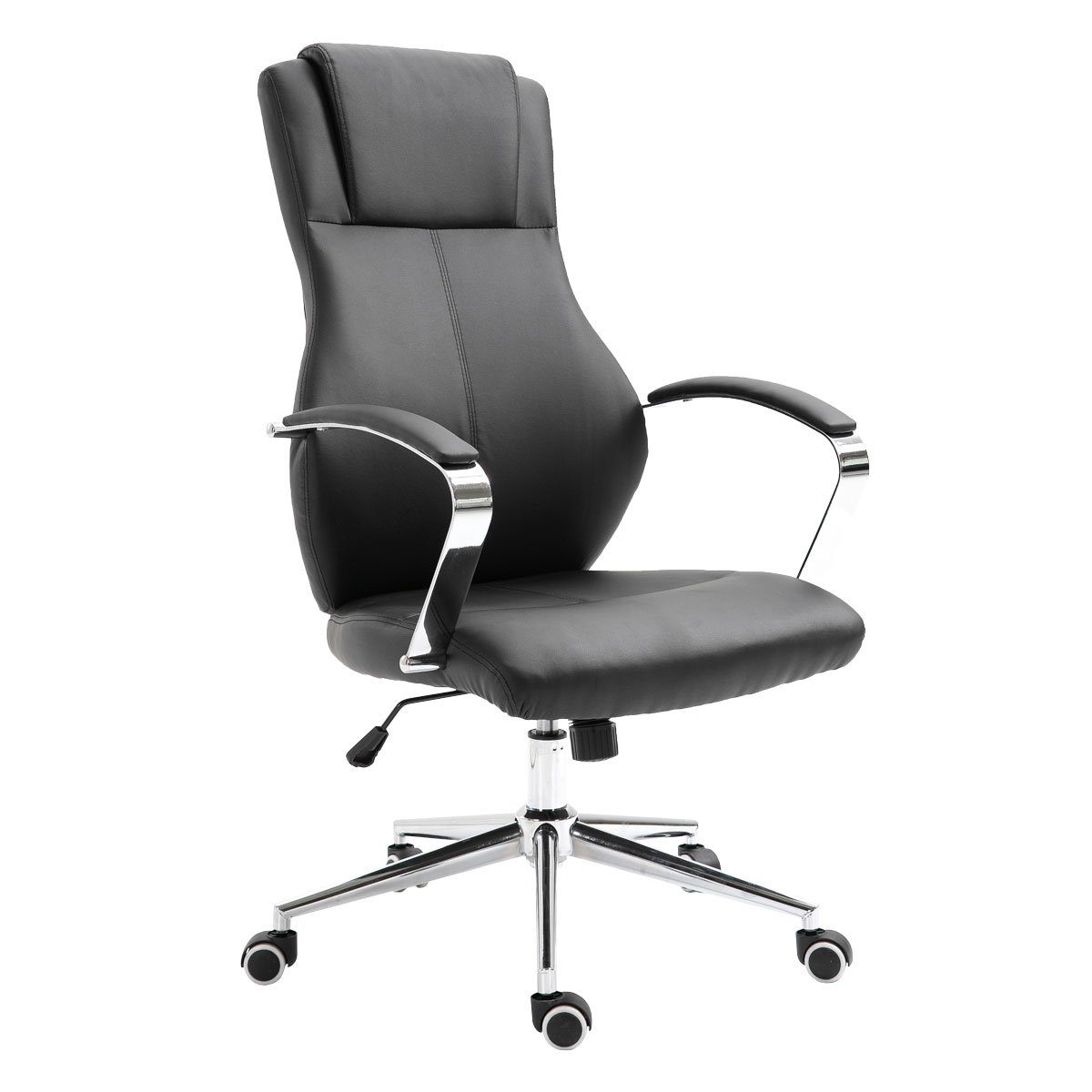 Die komfortable Sitzfläche des Chefsessels ist aus pflegeleichtem Polyester gefertigt. Durch die Gasdruckfeder ist der Stuhl stufenlos in der Höhe verstellbar. Die Armlehnen des Konferenz-Stuhls sind aus verchromtem Metall mit einer weichen Polsterung obendrauf. Der elegante breite Chromfuß verleiht dem Drehstuhl Stabilität.
