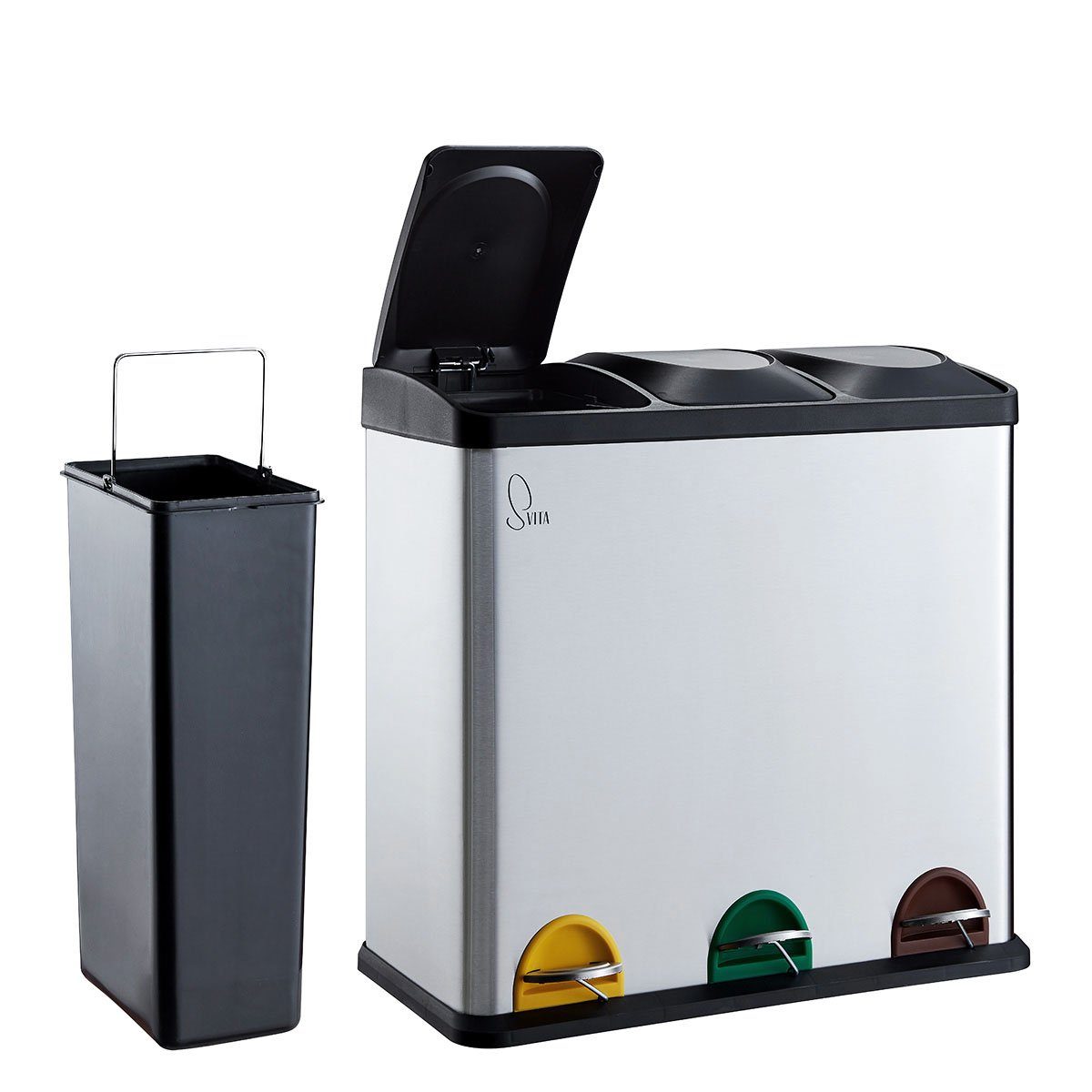 SVITA TC3X20 Mülleimer mit drei Kammern in Schwarz