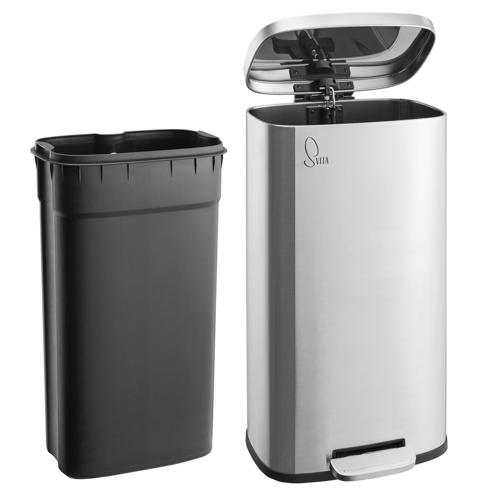 Der vielseitig einsetzbare Müllsammler von SVITA ist aus hochwertigem pulverbeschichtetem Stahl hergestellt und hat ein robustes Tretpedal. Damit lässt sich der Eimer mühelos öffnen. Mit einem Fassungsvermögen von 30L bietet er ausreichend Platz, auch für größere Abfälle, wie Verpackungsmüll oder Papier.