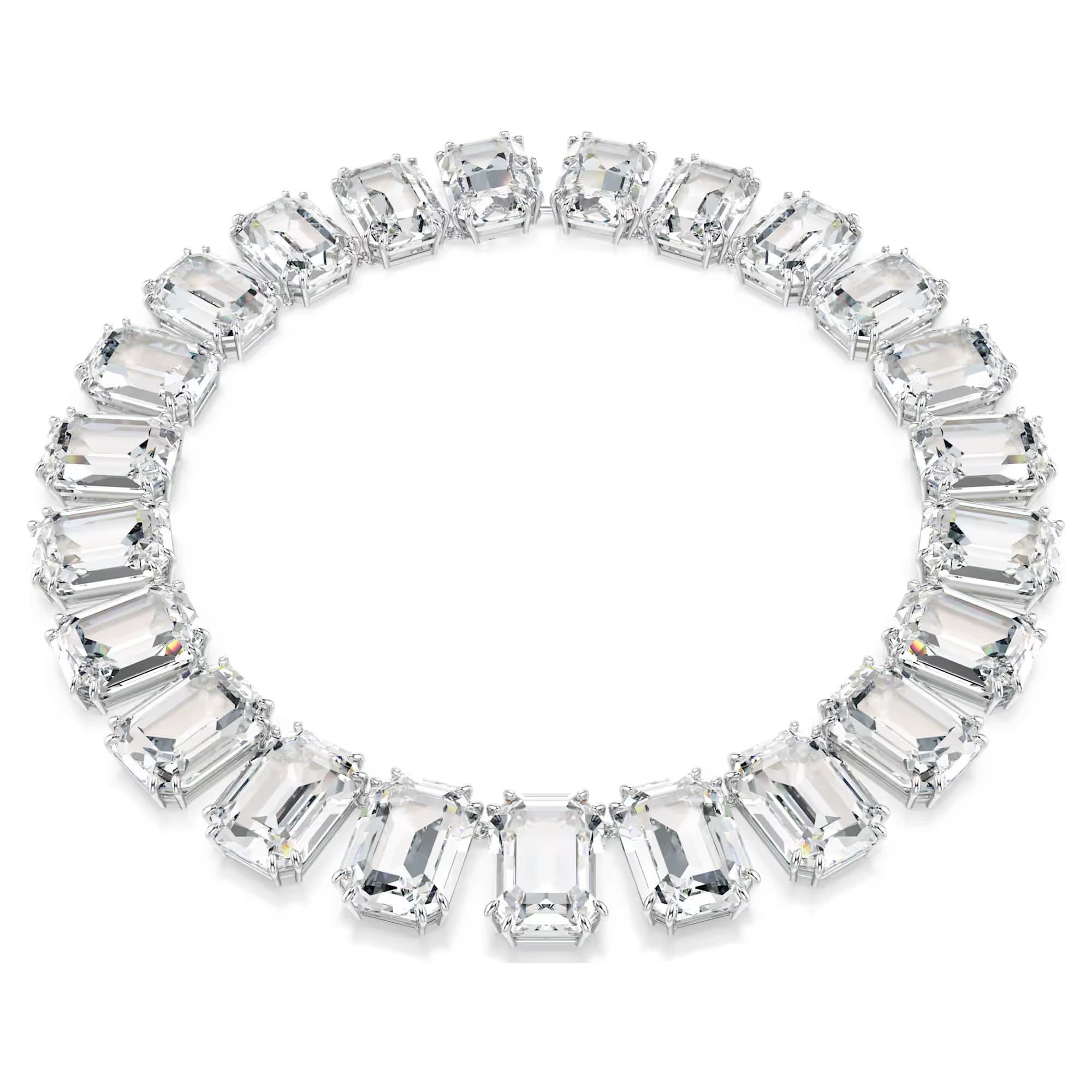 Entdecken Sie Ihr neues Lieblingsstück für jeden Tag: Diese einzigartige Halskette besticht mit einer Reihe klarer Kristalle im Oktagon-Schliff, jeweils gefasst in einer rhodinierten Krappenfassung. Der unsichtbare Verschluss sorgt für einen nahtlosen Look. Mit dieser Halskette als leuchtend farbigem Blickfang erhält Ihr Alltagsoutfit neuen Pep.